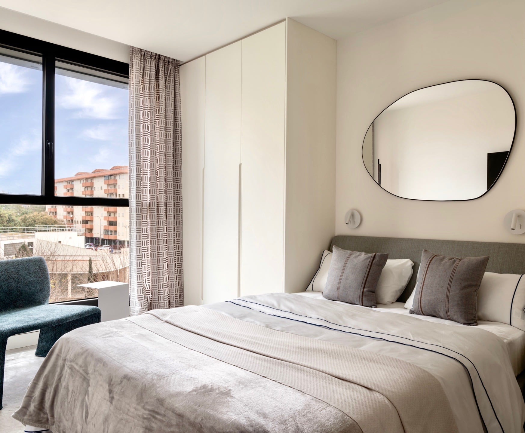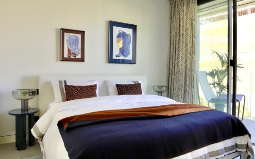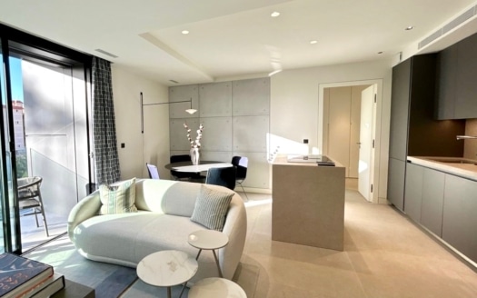 The constructed area is almost 100 m² and is distributed as follows: from the inviting entrance area you enter the cozy, open living/dining area and the adjoining fully equipped kitchen. Both the living area and the master bedroom have access to a terrace from which you can enjoy the view. In total, this property offers two spacious bedrooms and two bathrooms. The apartment is offered unfurnished but high-quality designer furniture and a parking space in the underground garage including storage room can be purchased separately.