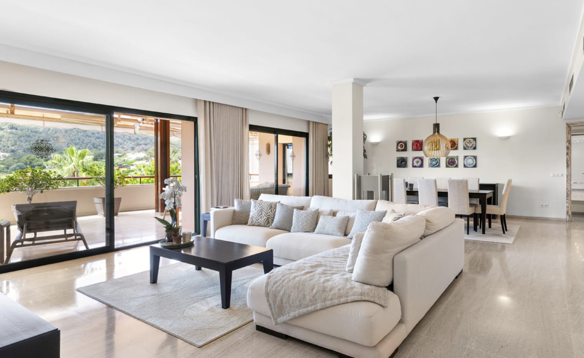 This elegant penthouse in Bendinat offers the rare opportunity to enjoy exceptional space, light and panoramic views in one of Mallorca’s most prestigious residential areas. With a generous living area of approx. 240 m², this home is arranged entirely on one level and offers both comfort and functionality.
