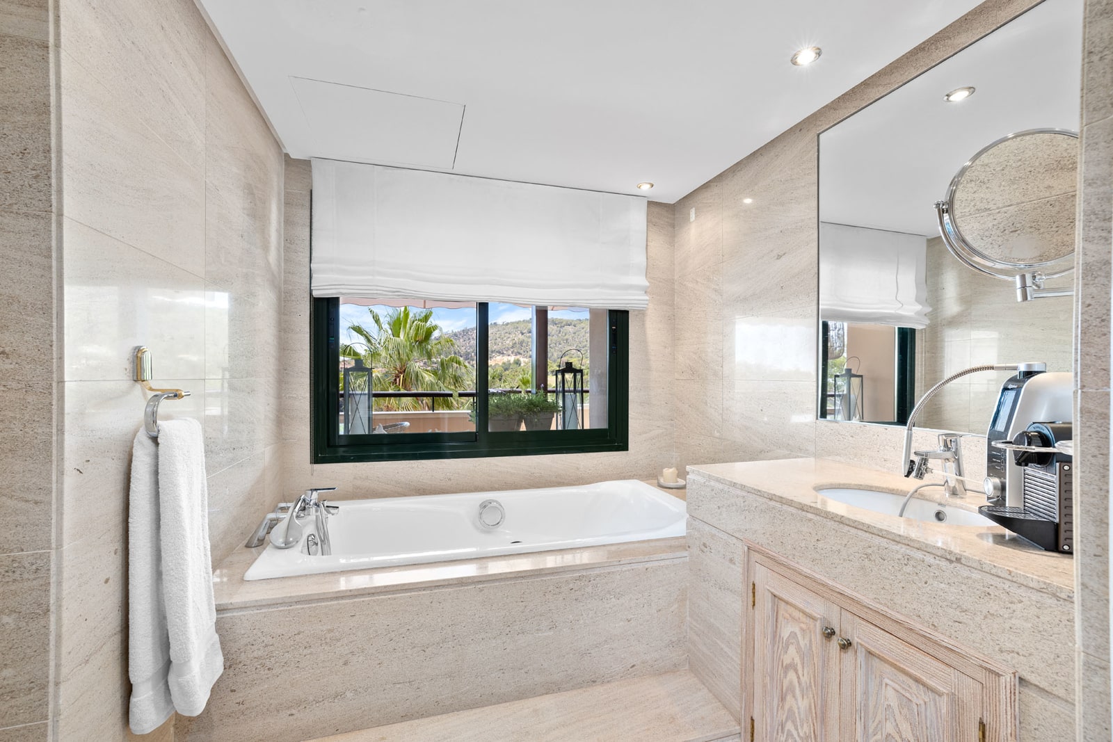 The master suite has direct access to the terrace and has an en-suite bathroom, while three further bedrooms each have their own bathroom. A guest WC completes the facilities.