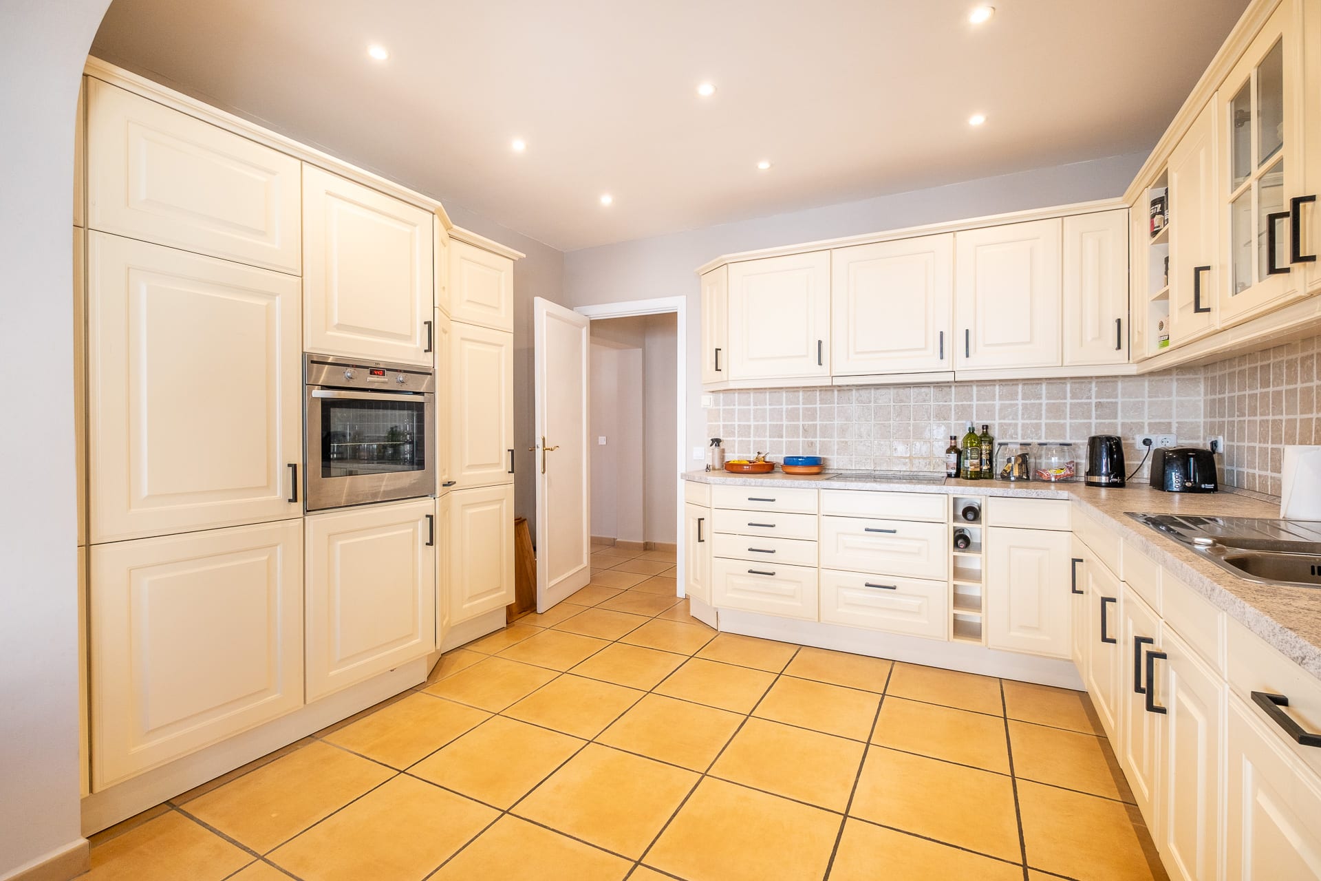 The beautiful living area with fireplace and wood-burning stove creates a warm, inviting atmosphere. The large entrance area, which is connected to the living room and can also be used as an additional living space, leads to the terrace and on to the Mediterranean-style garden. The private pool invites you to refresh yourself on sunny days, while the south-east orientation guarantees pleasant light from morning until the early evening hours.