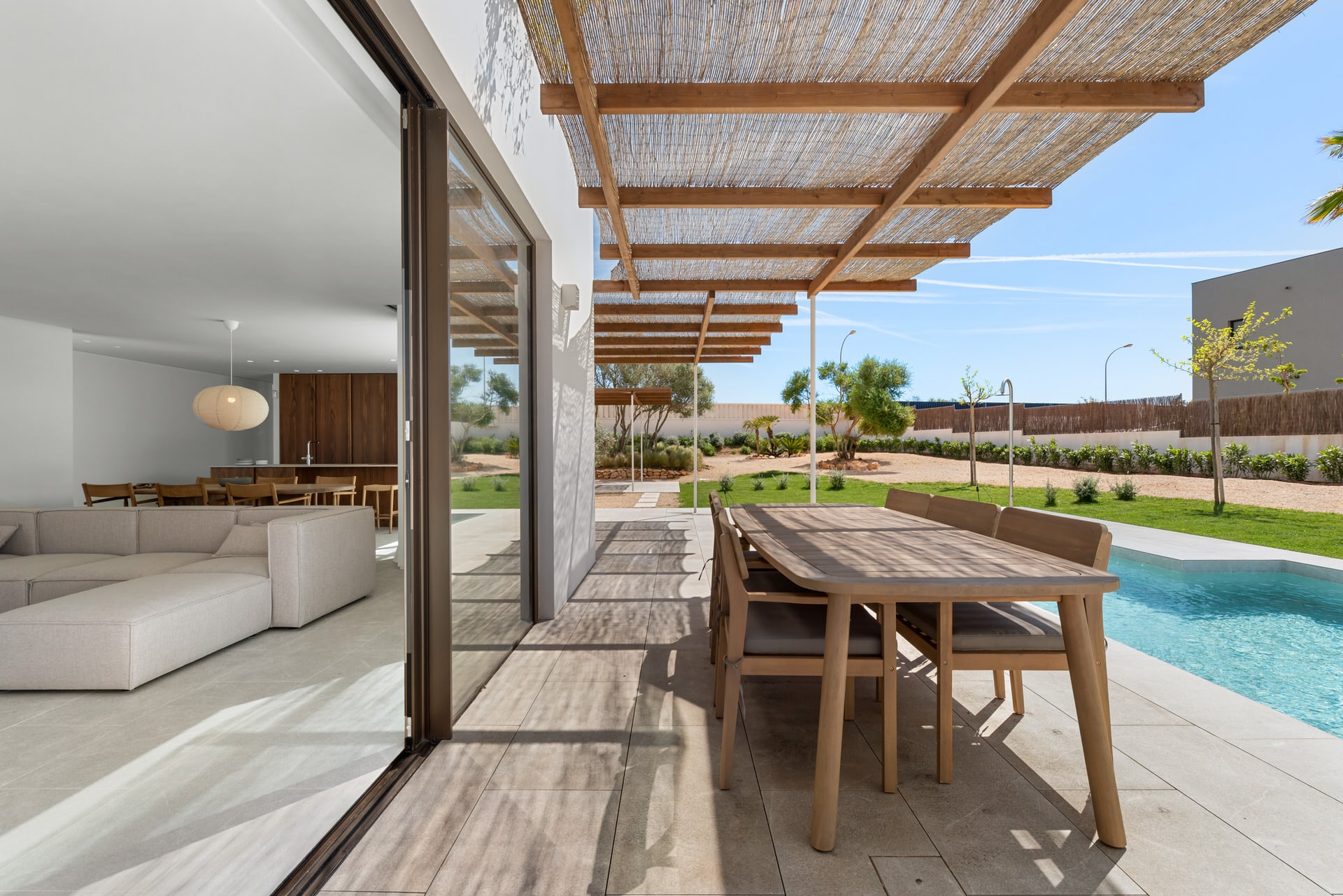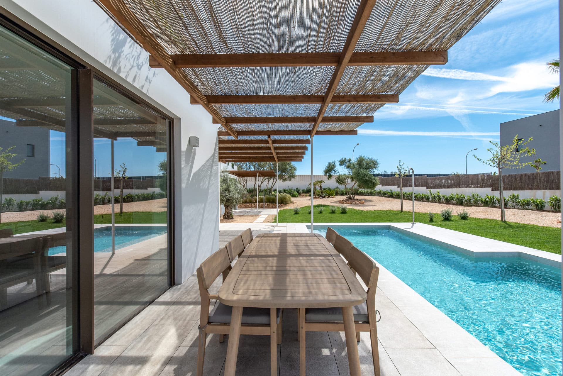 This stylish new-build villa in Son Gual combines modern design with Mediterranean quality of life in a peaceful and exclusive setting, just 20 minutes from Palma and close to one of the best golf courses on the island. The property is nearing completion and was realized by a renowned developer with an excellent architectural signature. Bright, open rooms, clear lines and carefully selected natural materials create an elegant and inviting living ambience of the highest standard.