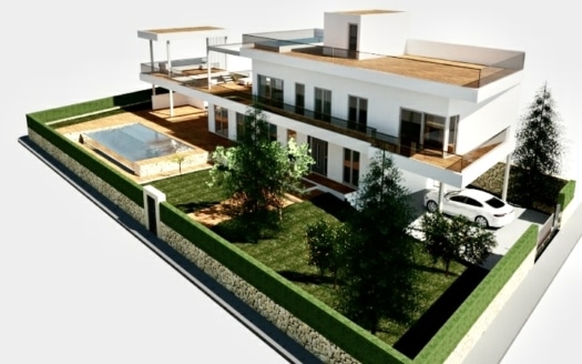 On the upper floor will be the large master bedroom with en suite bathroom and dressing room, as well as two further bedrooms and two bathrooms. There will also be a large terrace with pergola with a cozy lounge and fantastic panoramic views as far as the sea.