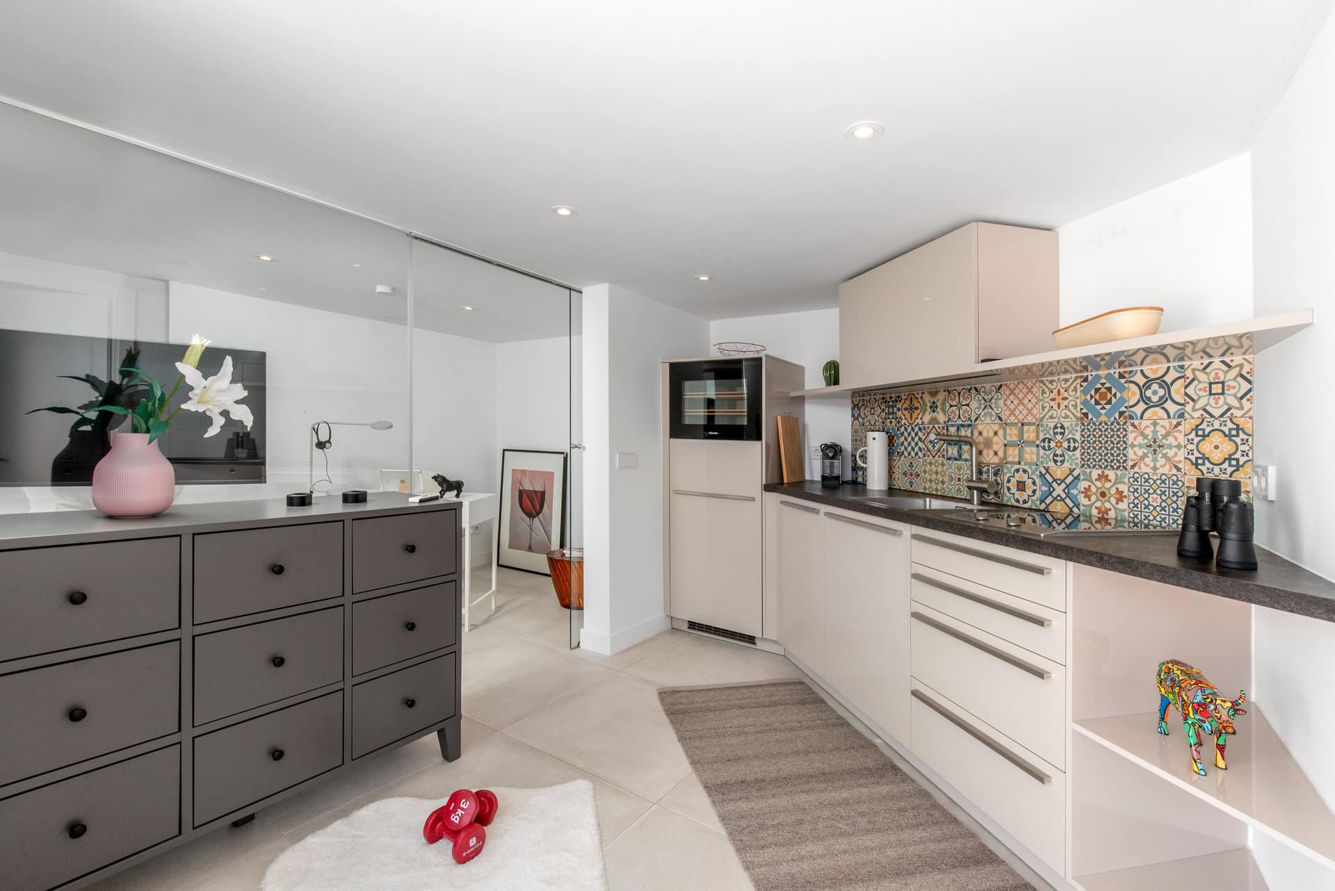 The location is hard to beat: In the immediate vicinity are fine sandy beaches, charming restaurants, cafés, boutiques and all the amenities of daily life. The center of Palma and the airport can be reached in just a few minutes - perfect for commuters, frequent travelers or as a retreat.