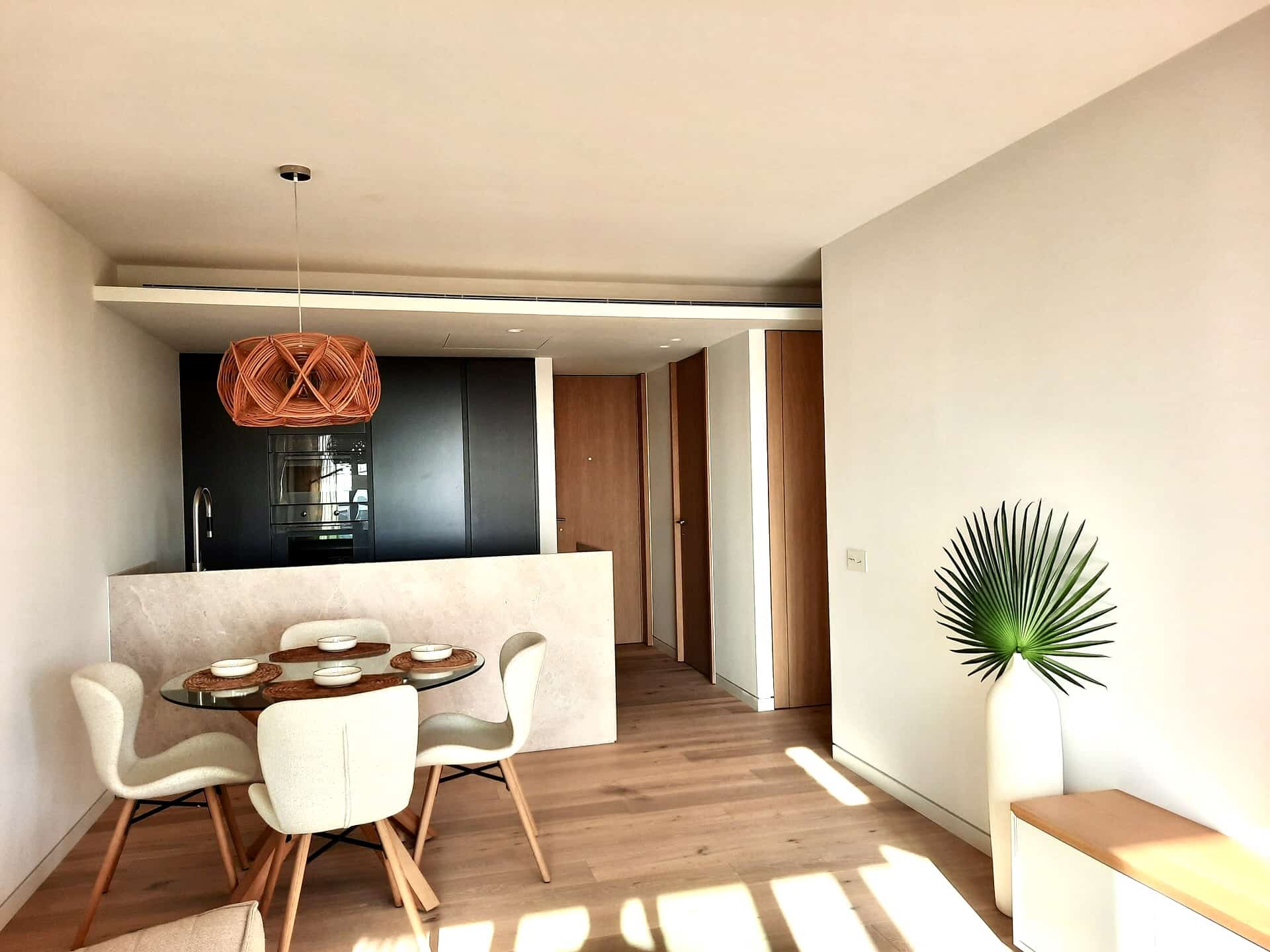 This penthouse has a spacious living/dining area, a separate kitchen with breakfast table, a total of two bedrooms with en suite bathrooms and a guest WC. The master bedroom also has a large walk-in closet.