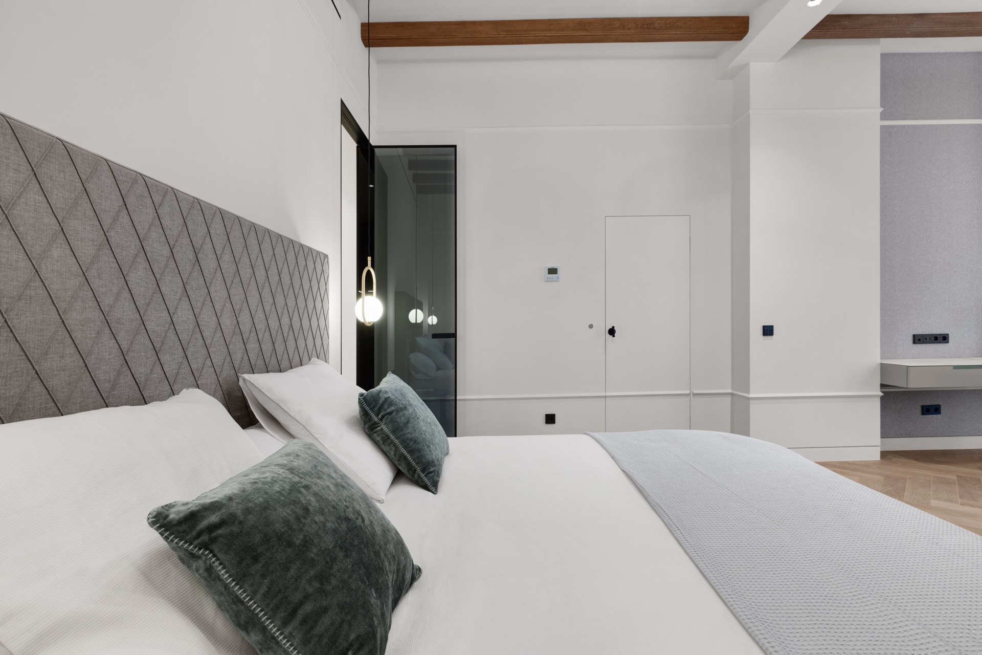 The master bedroom with its own lounge is located on the 1st floor and has direct access to the elevator, which connects all levels of the property.