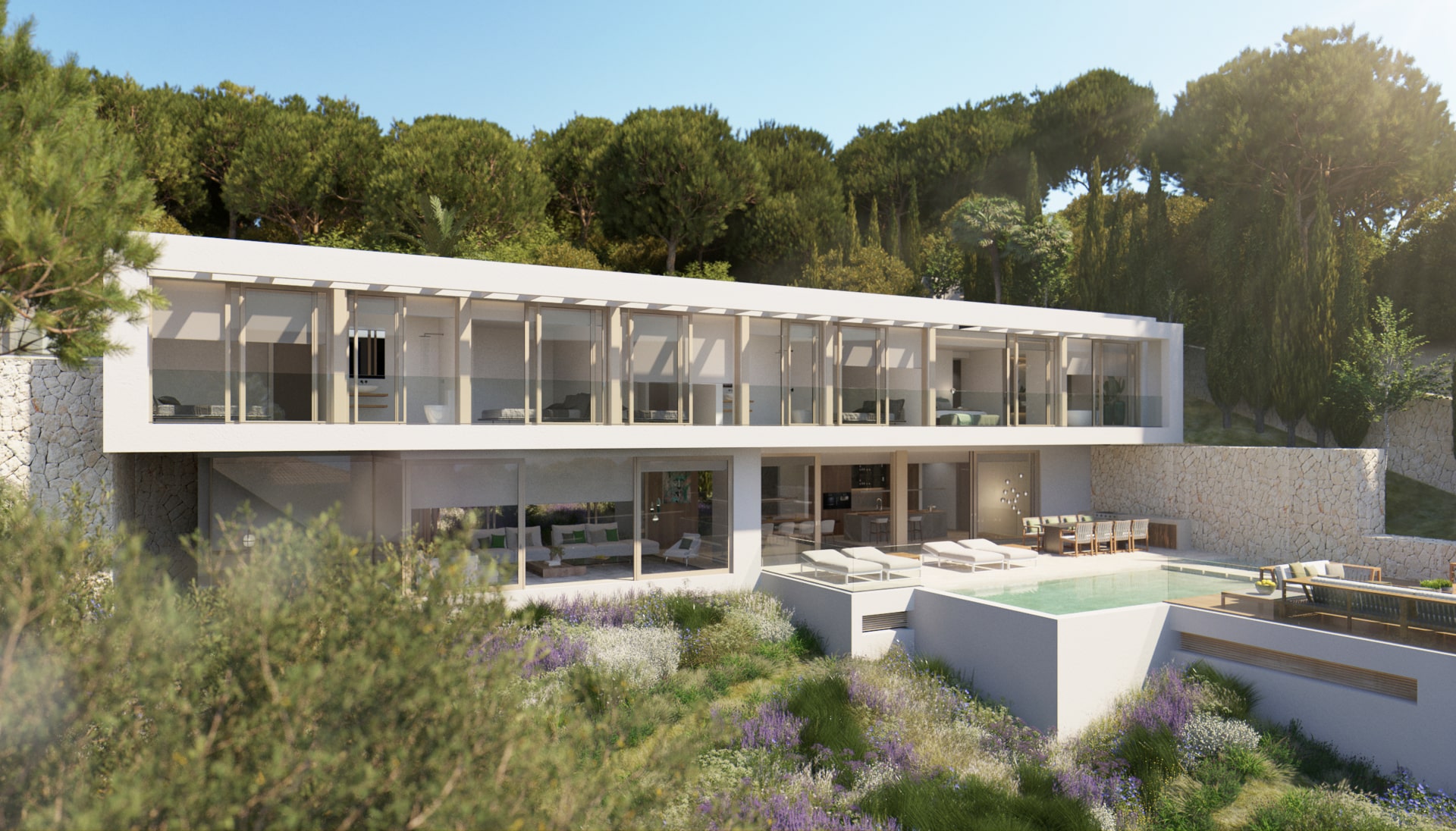 UNDER CONSTRUCTION! Exclusive designer villa in Puerto Portals with fantastic sea and panoramic views