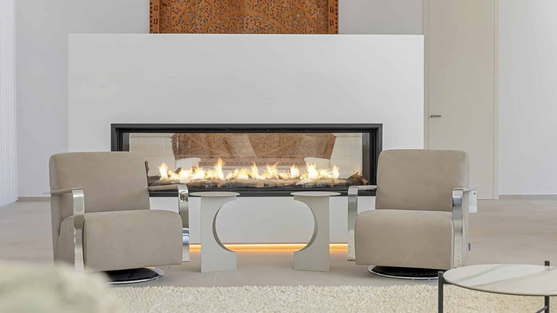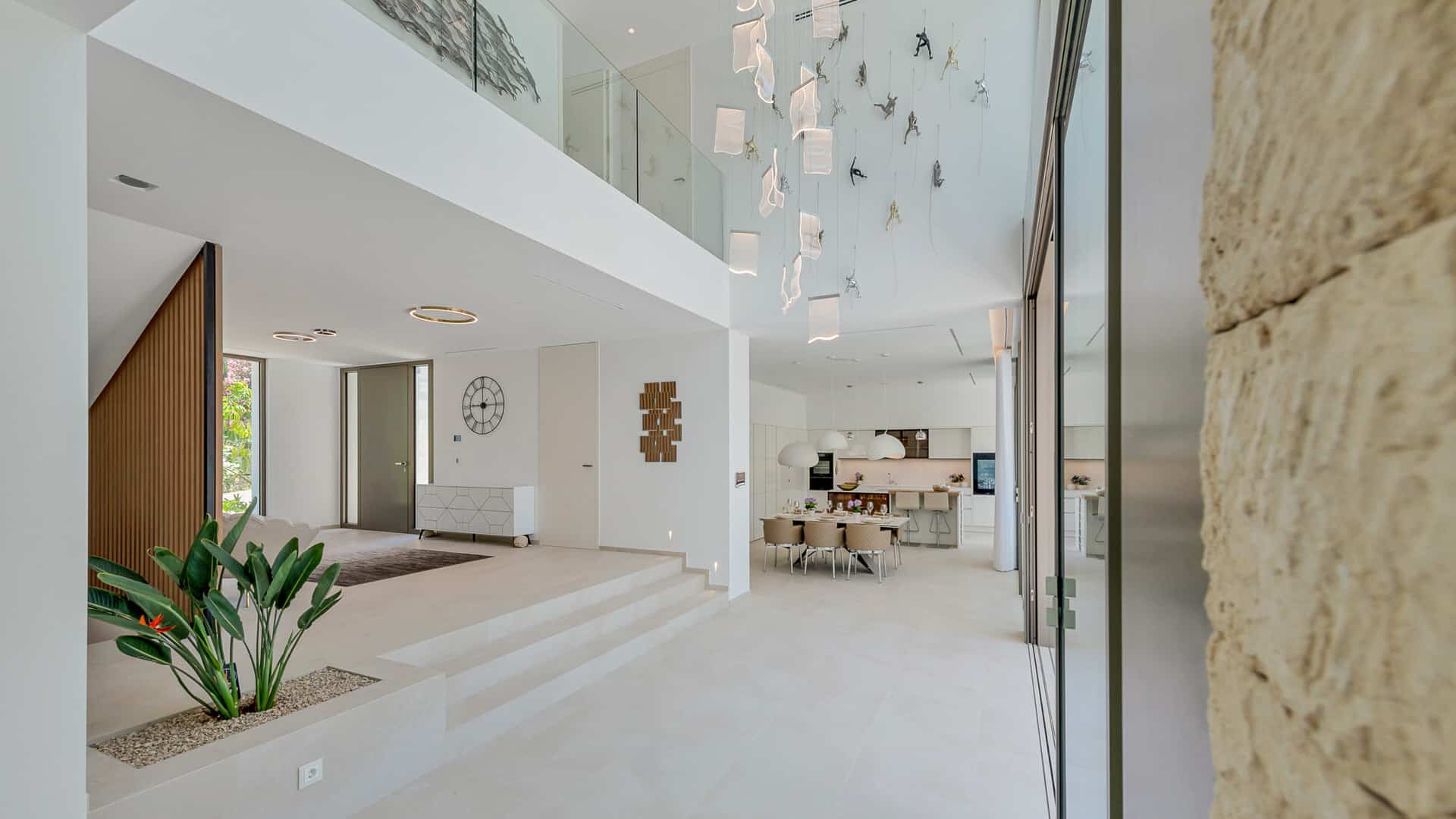 La planta baja ofrece un estilo de vida abierto y moderno, que está perfectamente conectado con las maravillosas zonas al aire libre y el paisaje de la piscina de la casa. Aquí se encuentra la amplia zona de entrada, en parte con techos de doble altura, el salón con chimenea de doble cara y rincón de lectura, la cocina totalmente equipada con electrodomésticos MIELE de alta calidad, zona de comedor y lavadero contiguo, así como una unidad de estar independiente que podría conectarse a uno de los dormitorios superiores o utilizarse como una prestigiosa oficina con su propia terraza. Un aseo de invitados y un guardarropa proporcionan comodidad adicional.