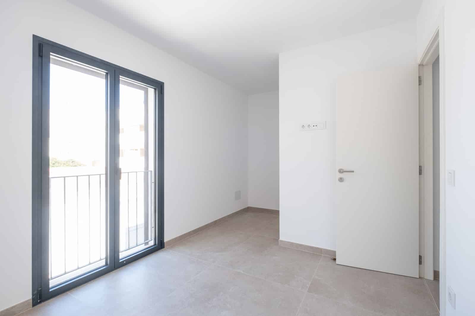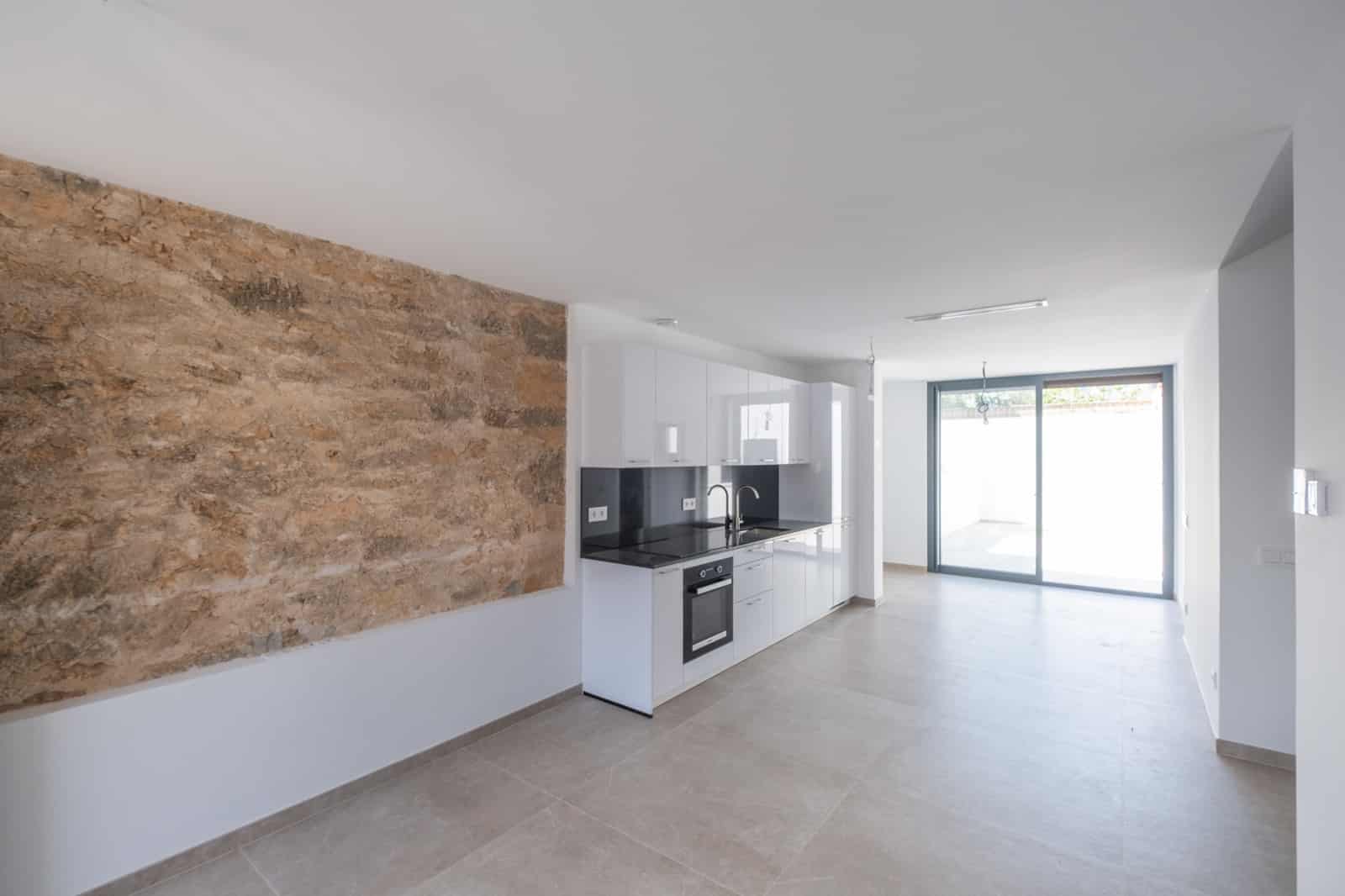 Las ventanas y puertas de aluminio del suelo al techo con contraventanas mallorquinas proporcionan mucha luz natural y conectan armoniosamente el interior y el exterior.