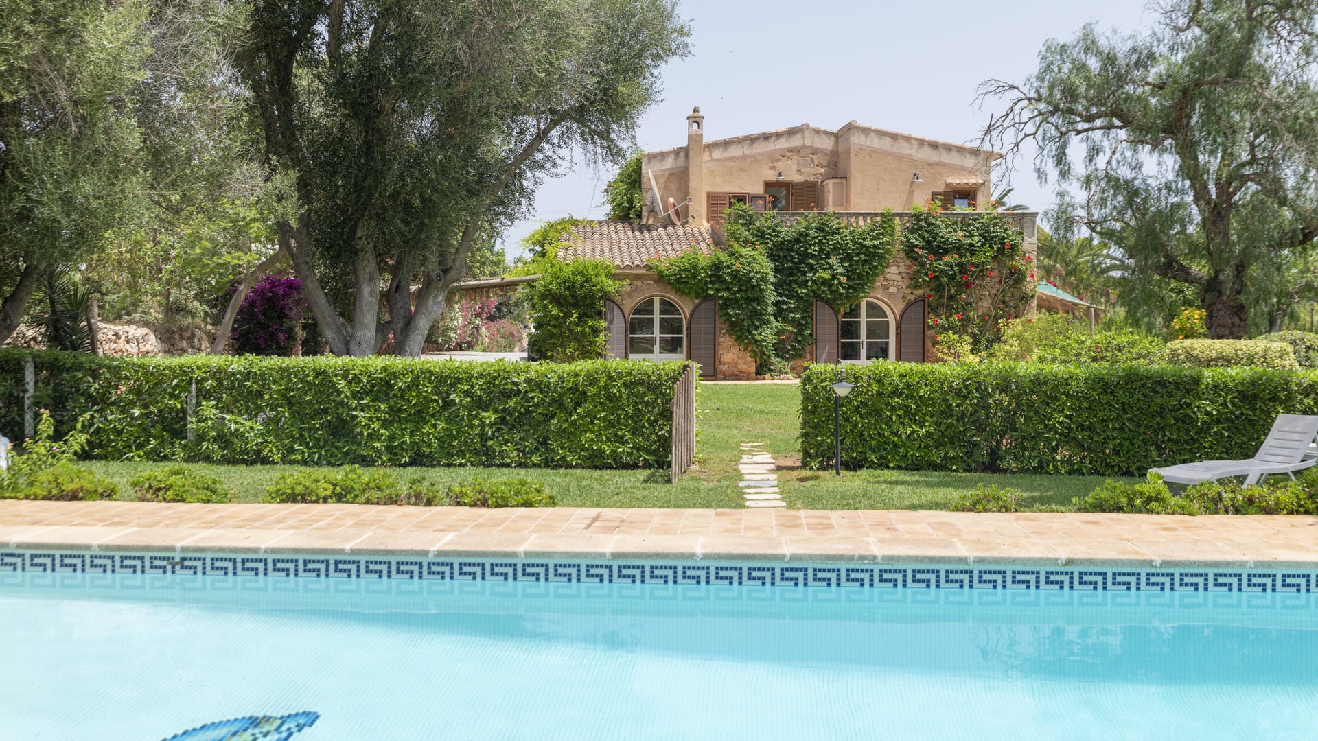 A las afueras del pueblo de Calonge, en el sureste de la isla, se encuentra esta finca tradicional mallorquina, que cuenta con licencia de alquiler vacacional y total privacidad.
