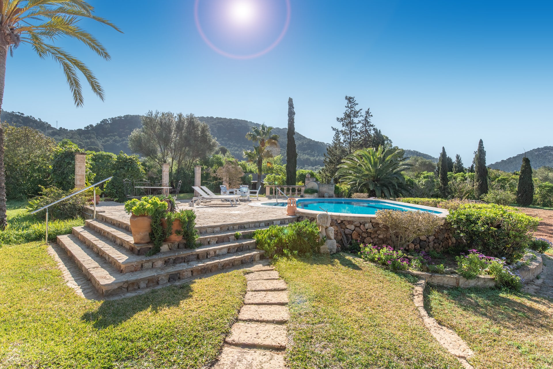 Enclavada en un impresionante paisaje de montaña y rodeada de exuberante vegetación mediterránea, la propiedad impresiona por su ambiente tranquilo y soleado, un refugio perfecto para disfrutar del estilo de vida mediterráneo durante todo el año. La espaciosa parcela está ajardinada con árboles frutales, palmeras y un jardín diseñado con esmero, lo que confiere a la propiedad un carácter especial y una elegancia natural.