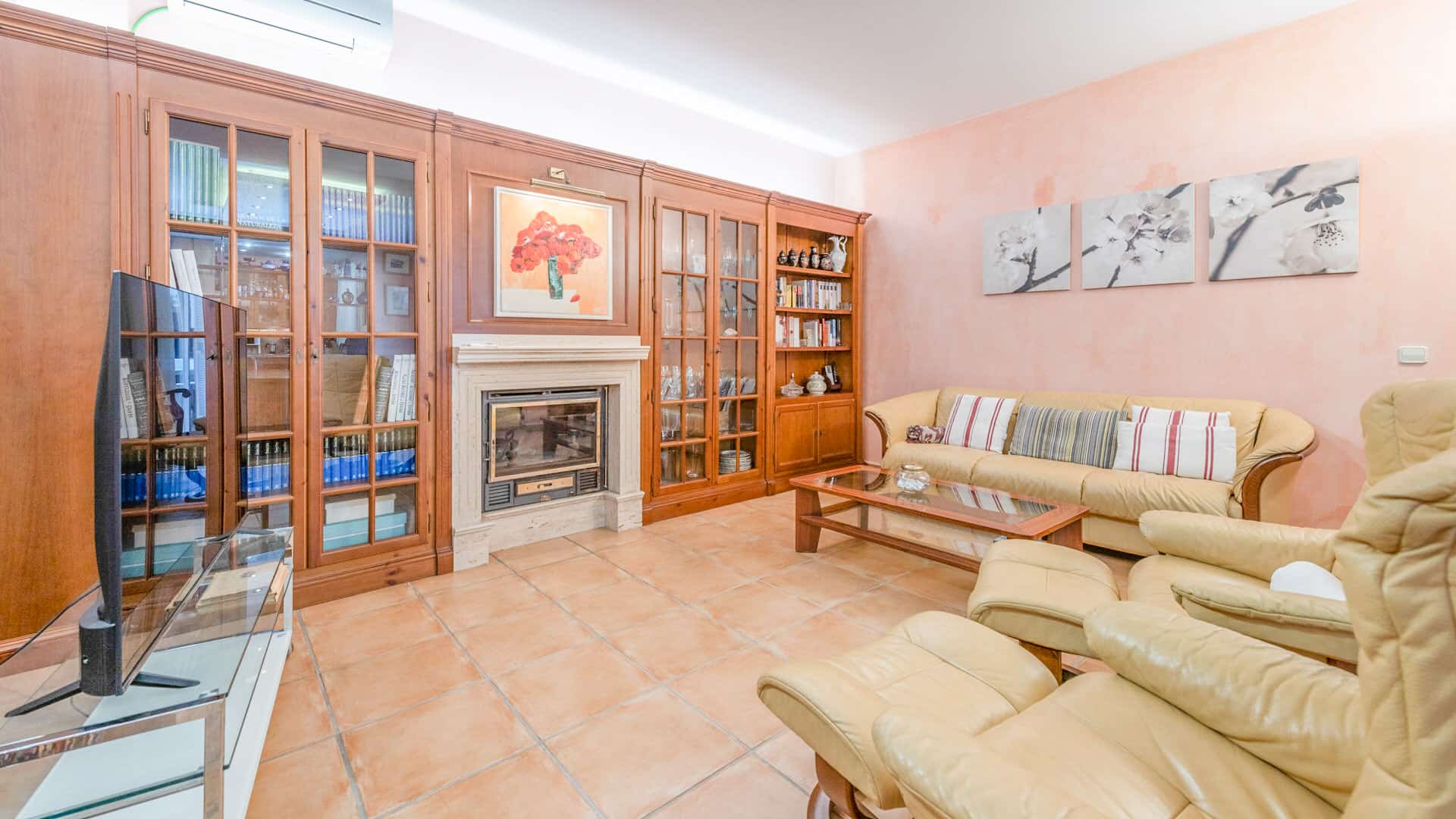 La calefacción por suelo radiante (calefacción central de gasoil), el aire acondicionado en zonas seleccionadas y una chimenea para las horas acogedoras garantizan un agradable clima de vida. Los suelos de baldosas y los prácticos armarios empotrados completan el equipamiento.