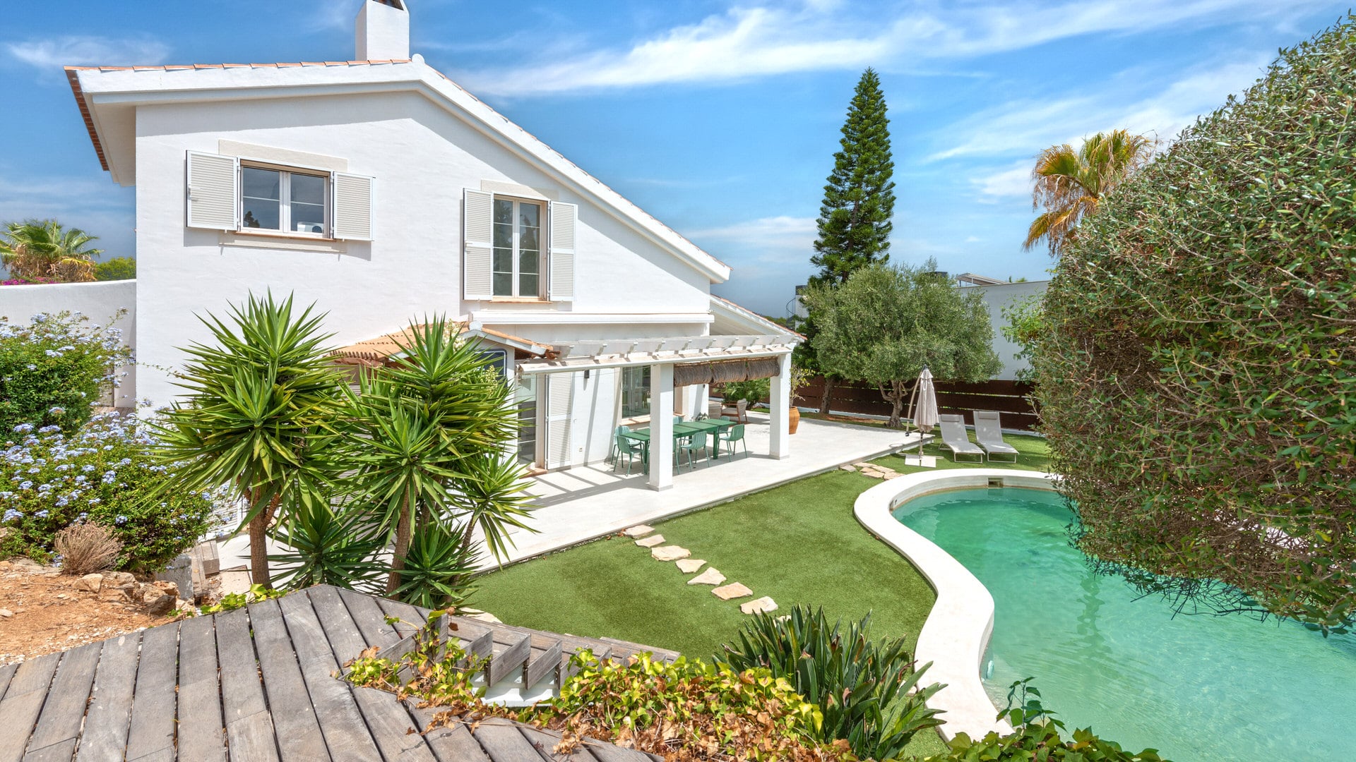 Los espacios exteriores son igualmente impresionantes, con una piscina recién renovada (2022) y acogedoras terrazas que aprovechan al máximo el clima mediterráneo. Una cocina exterior, que ofrece oportunidades para el rediseño y la mejora personal, mejora la experiencia de vida al aire libre. El exuberante jardín llano es perfecto para relajarse, descansar o recibir invitados, convirtiéndolo en un verdadero paraíso para disfrutar de los días soleados y las cálidas tardes.
