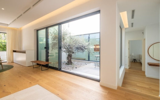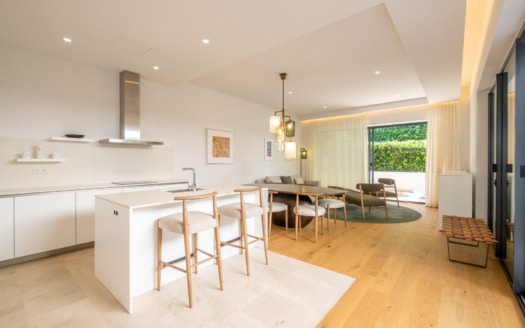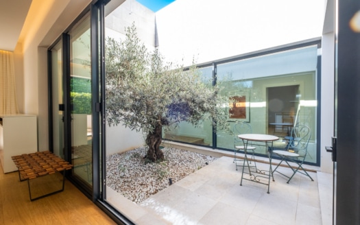 Treten Sie ein in Ihr neues Zuhause und lassen Sie sich von der modernen Eleganz dieses freistehenden Hauses verzaubern. Das großzügige Wohn- und Esszimmer mit der offenen, modernen Bulthaup-Küche lädt zu entspannten Abenden mit Familie und Freunden ein. Die Eichenböden verleihen dem Raum eine warme Atmosphäre, während die Fußbodenheizung für behagliche Wärme sorgt. Insgesamt stehen Ihnen drei Schlafzimmer zur Verfügung, sowie ein Ankleidezimmer, in dem Sie Ihre Garderobe stilvoll unterbringen können. Zwei Bäder mit Kalksteinböden bieten Komfort und Luxus, während die Luft-Wärmepumpe und die Klimaanlage für angenehme Temperaturen das ganze Jahr über sorgen. Der Außenbereich präsentiert sich mit einem malerischen Patio, der von einem imposanten Olivenbaum geschmückt wird. Ein privater Pool lädt zu erfrischenden Schwimmeinheiten ein, während der private Garten und die schöne Gartenanlage Ruhe und Entspannung versprechen. Darüber hinaus können Sie auch den Gemeinschaftspool nutzen und die Sonne auf der Terrasse oder der Dachterrasse genießen. Für Ihr Fahrzeug steht eine geräumige Doppelgarage mit Wallbox bereit. Willkommen in Ihrem neuen Zuhause, wo Luxus, Komfort und Ästhetik harmonisch miteinander verschmelzen.