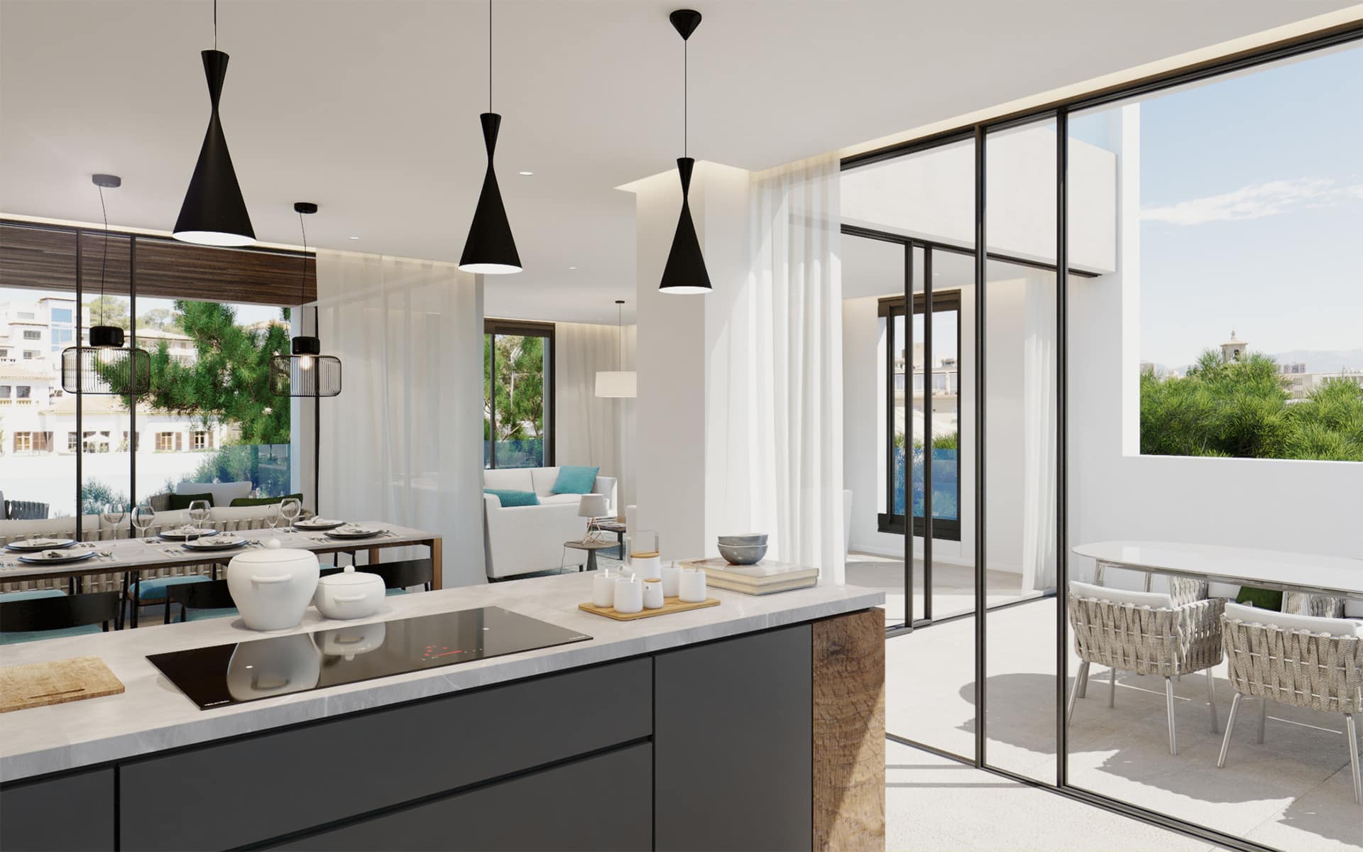 Este piso fantásticamente elegante en Palma con una gran terraza se encuentra en la 2ª planta de este edificio, que también dispone de ascensor.