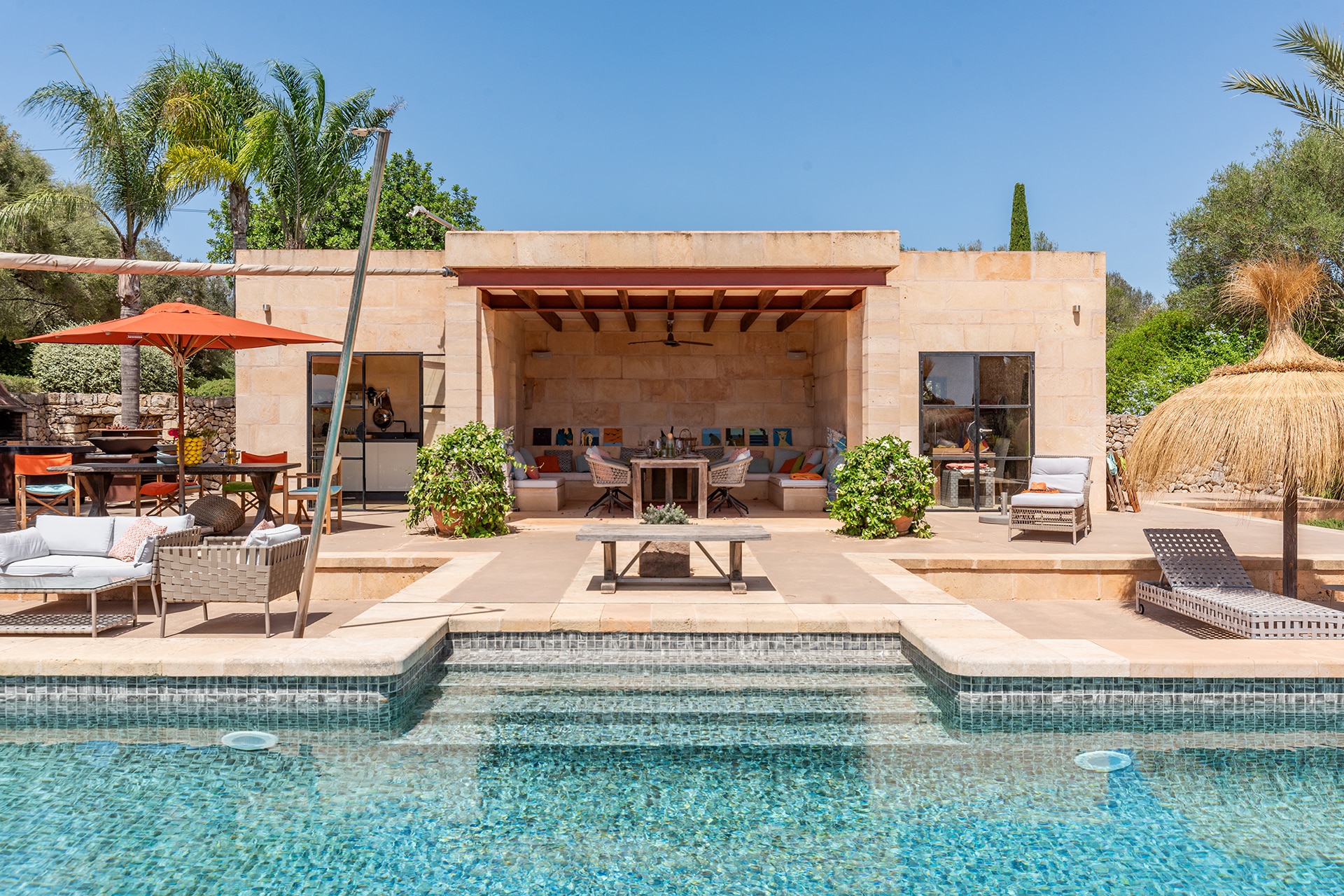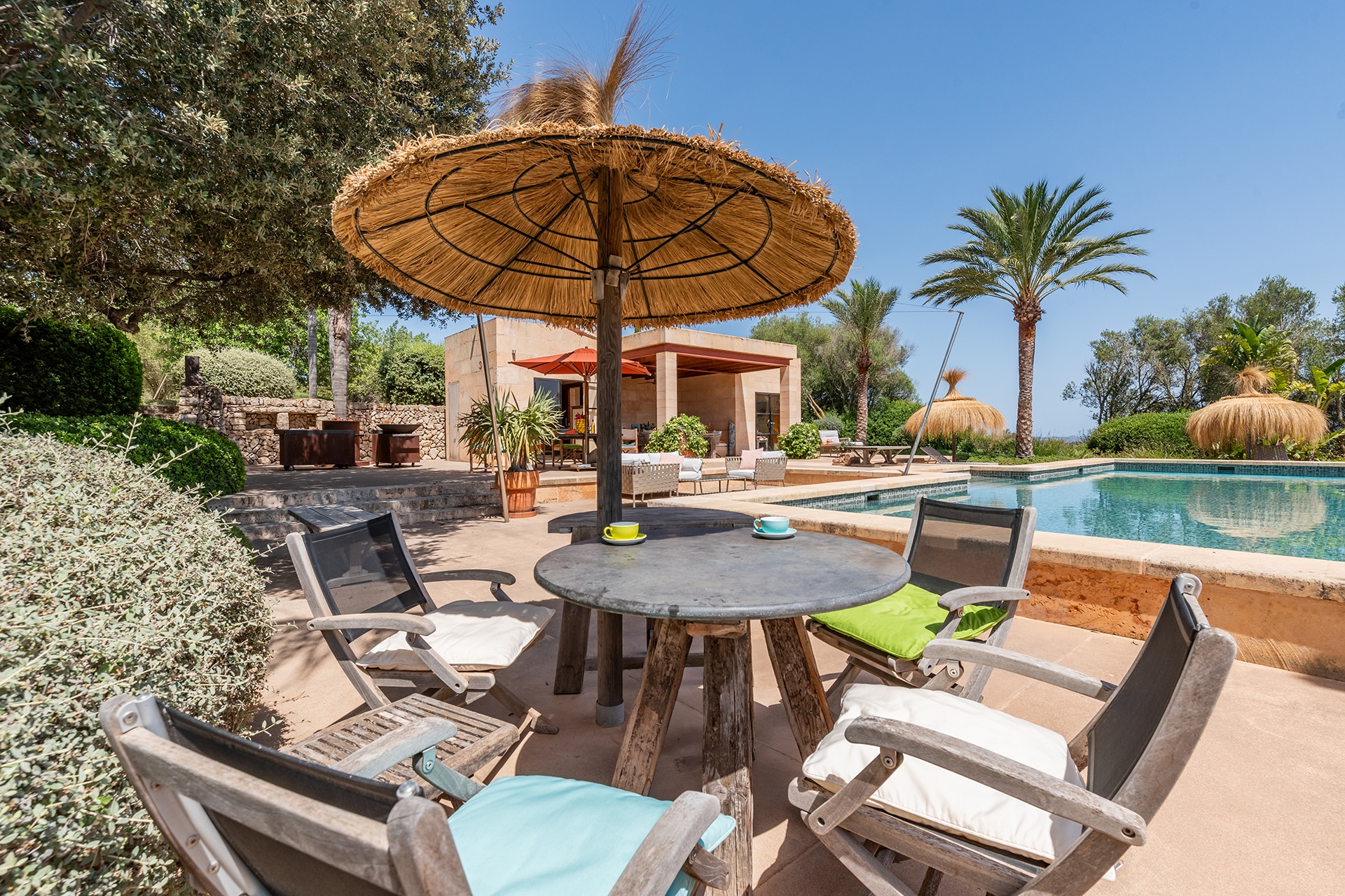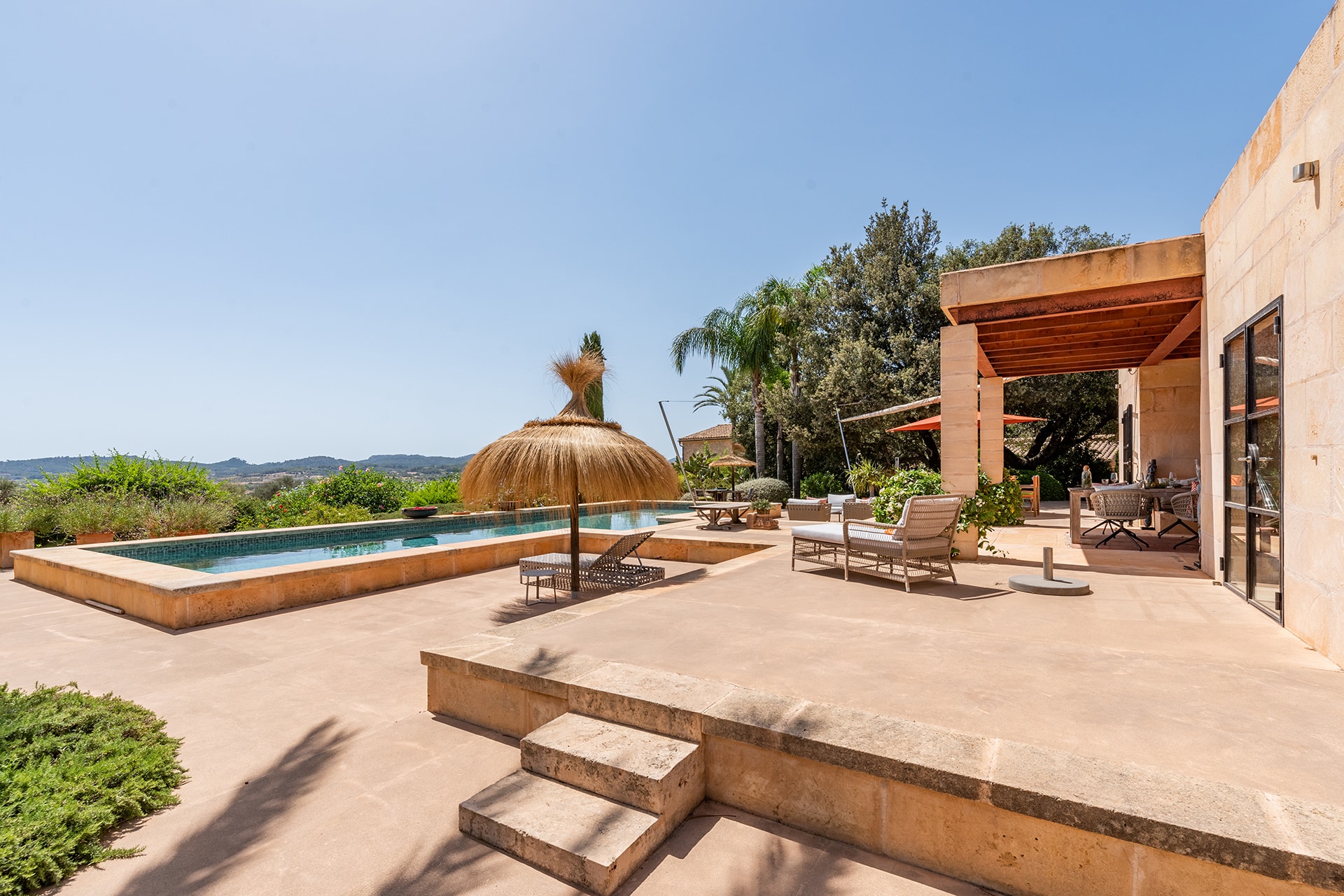 La finca tiene una superficie construida de aprox. 750 m² y combina el encanto tradicional mallorquín con el confort moderno. El equipamiento de alta calidad y el mobiliario de buen gusto garantizan un alto nivel de confort.