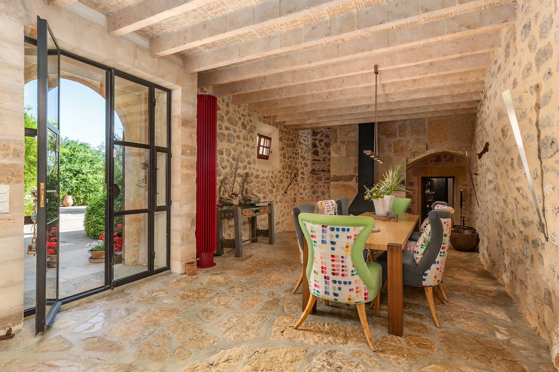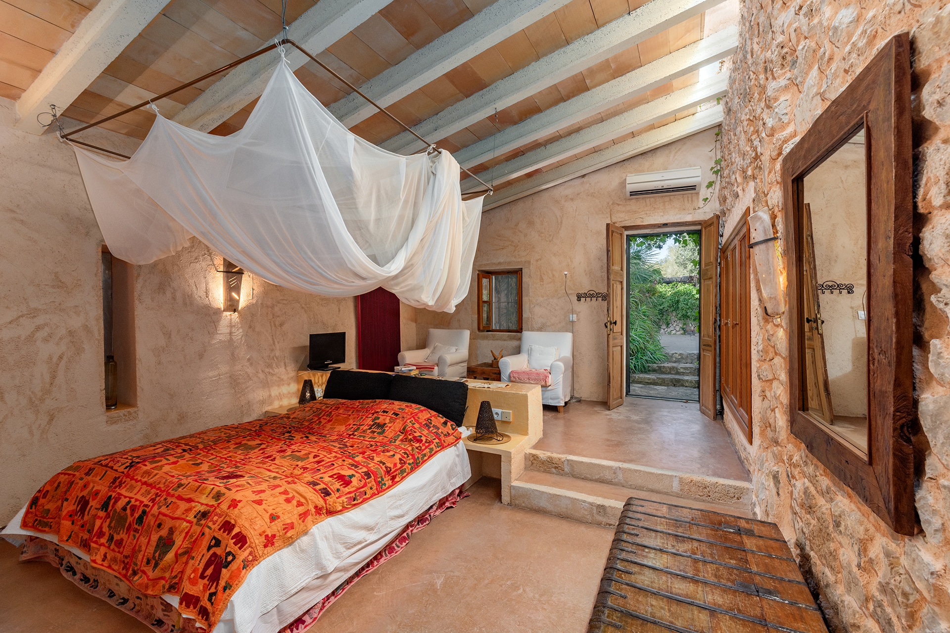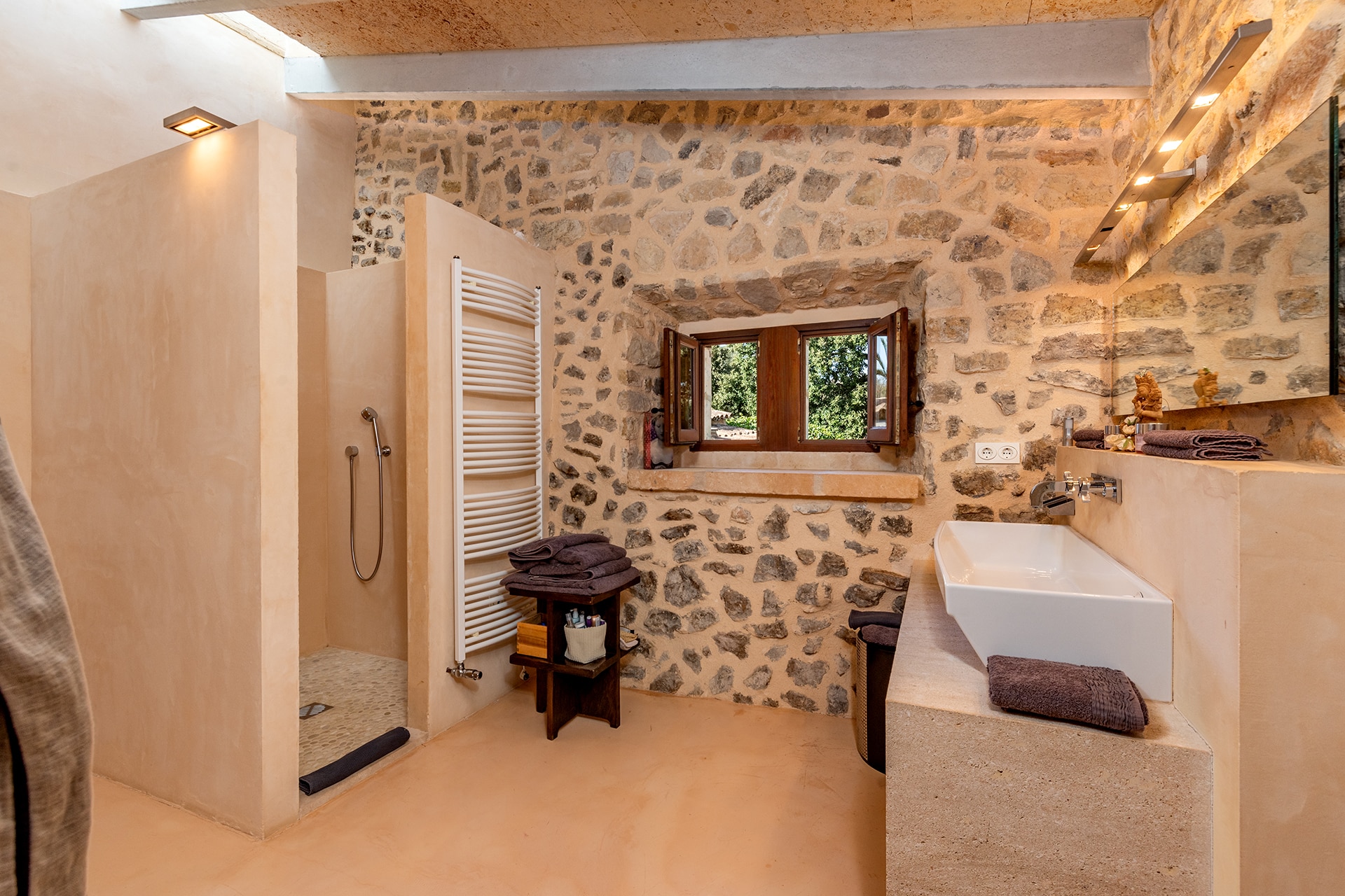 La finca tiene una superficie construida de aprox. 750 m² y combina el encanto tradicional mallorquín con el confort moderno. El equipamiento de alta calidad y el mobiliario de buen gusto garantizan un alto nivel de confort.