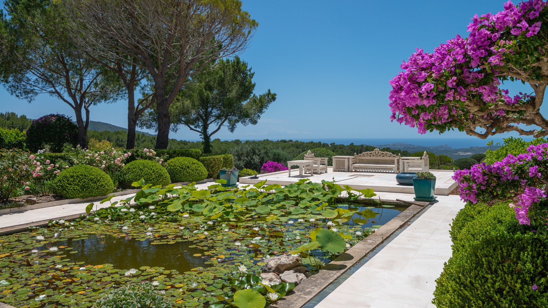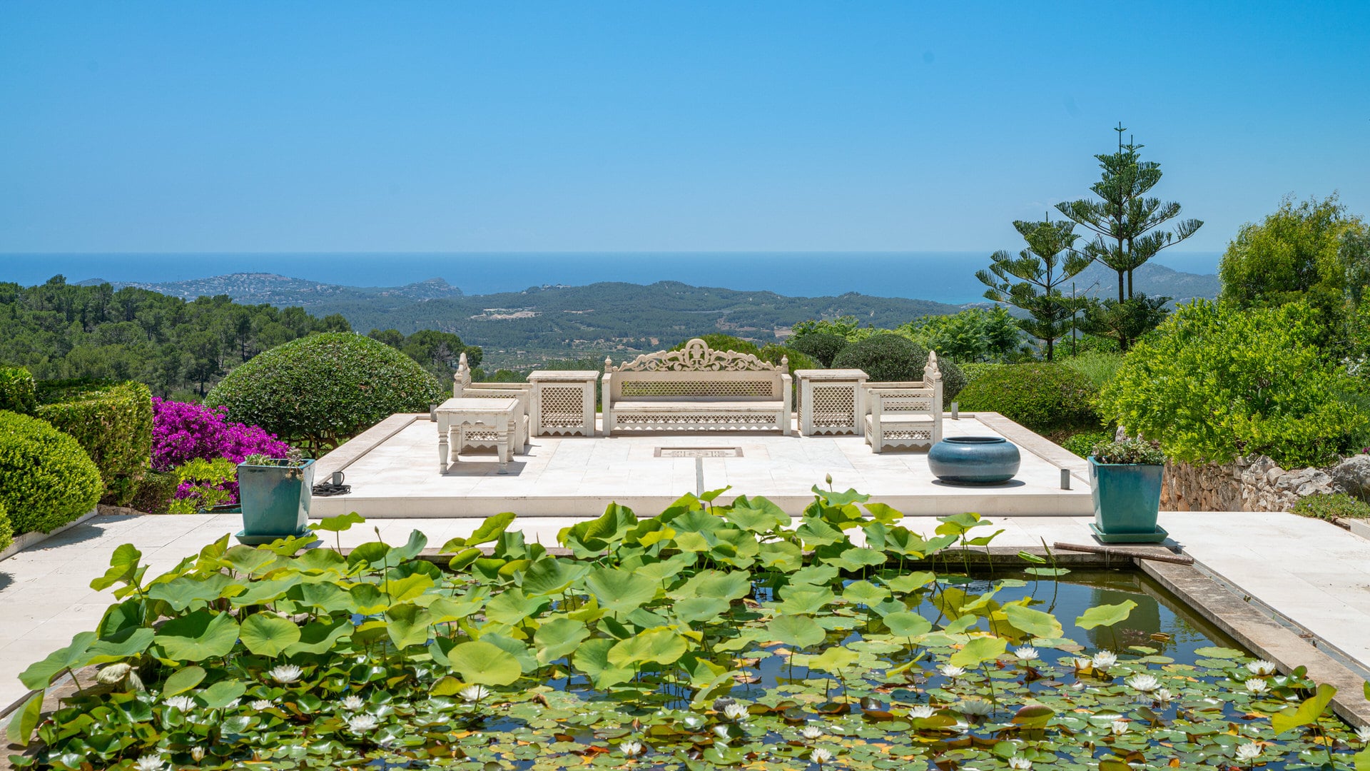 Lo más destacado de esta propiedad de Mallorca es el impresionante jardín de estilo japonés con plantas exóticas, un pabellón con buganvillas bonsai, árboles frutales, magnolias, jacarandas, paredes de bambú, rosas y mucho más.