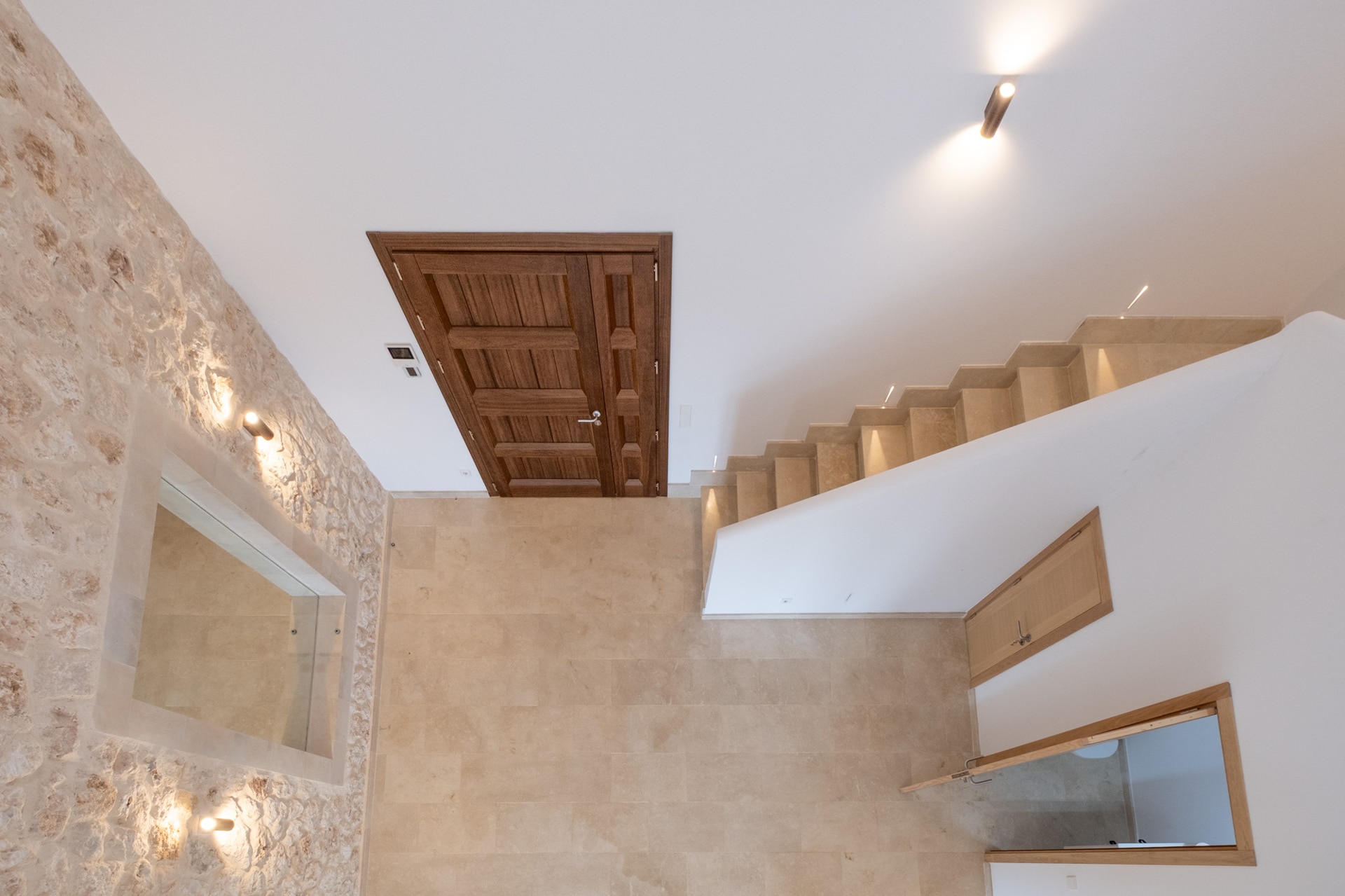 La fachada de piedra natural con aislamiento exterior y estilo mallorquín le cautivará desde el primer vistazo. Las típicas paredes de piedra mallorquina, los elegantes arcos de piedra natural y los elegantes suelos de mármol antiguo impregnan toda la propiedad y le confieren un ambiente inconfundible.