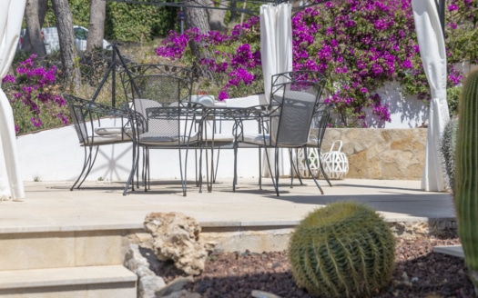En la planta superior se encuentra el amplio salón-comedor, una cocina abierta y totalmente equipada con electrodomésticos Siemens, un dormitorio principal con baño en suite, un aseo de invitados y una gran terraza con vistas al mar. En la planta baja hay 3 dormitorios con baño en suite y un trastero, así como la terraza de la piscina. En el sótano de la propiedad hay una sala de fitness con sauna, un baño y una lavandería. La gran terraza de la azotea completa la oferta en el popular suroeste de Mallorca e impresiona con numerosos y hermosos detalles. Costa den Blanes es una de las regiones más estables para comprar una propiedad en las Islas Baleares.