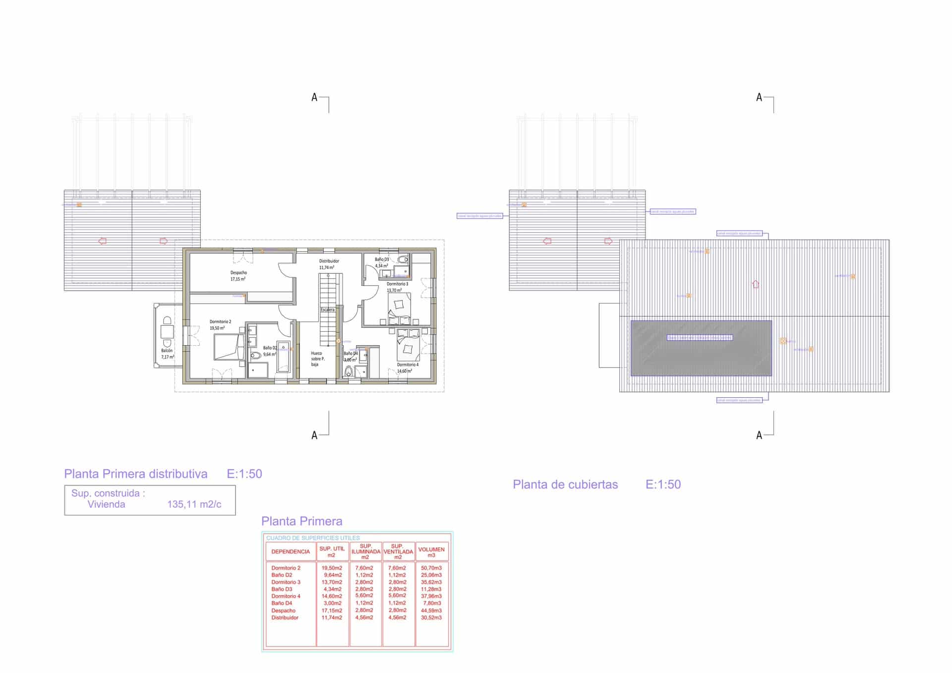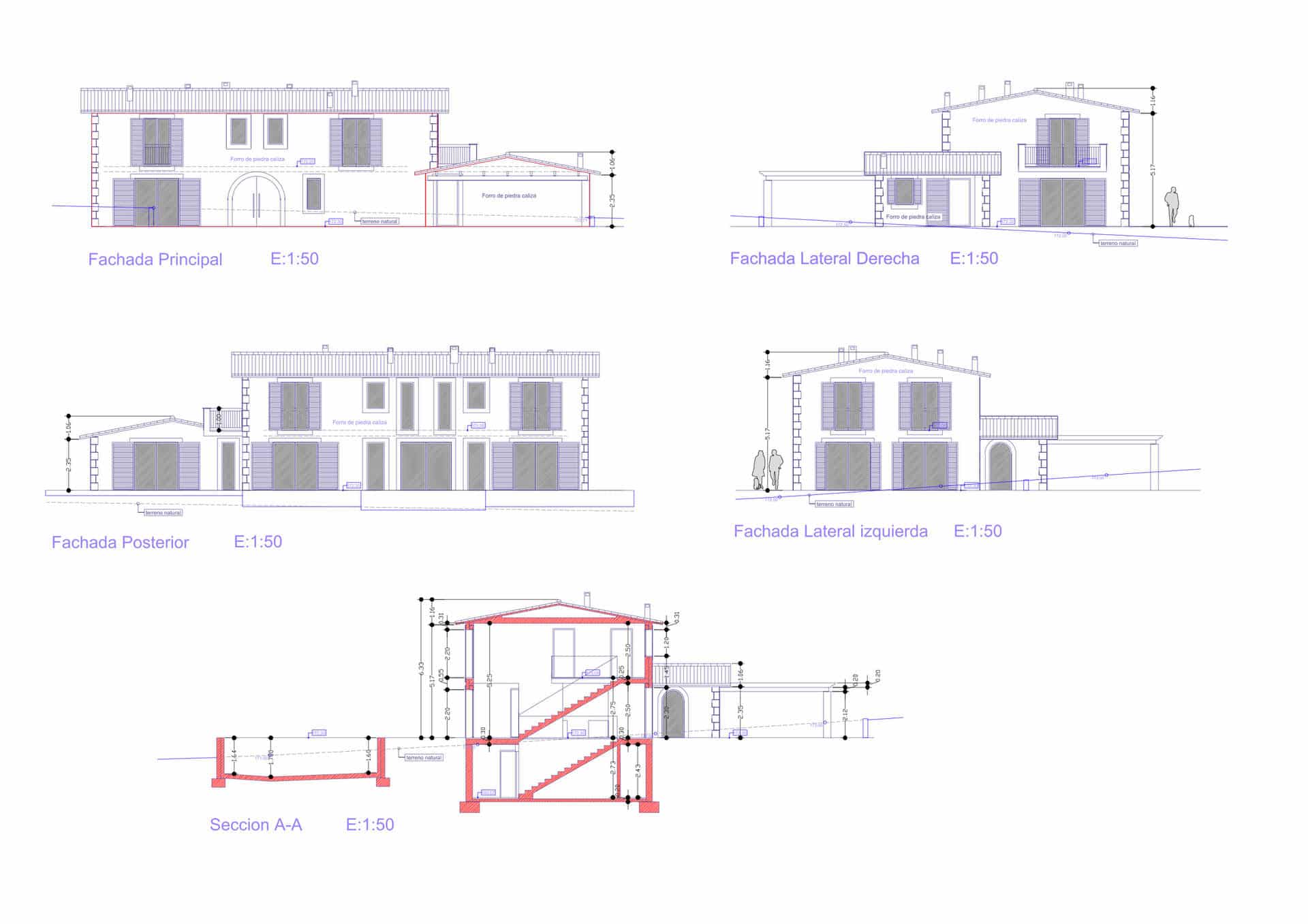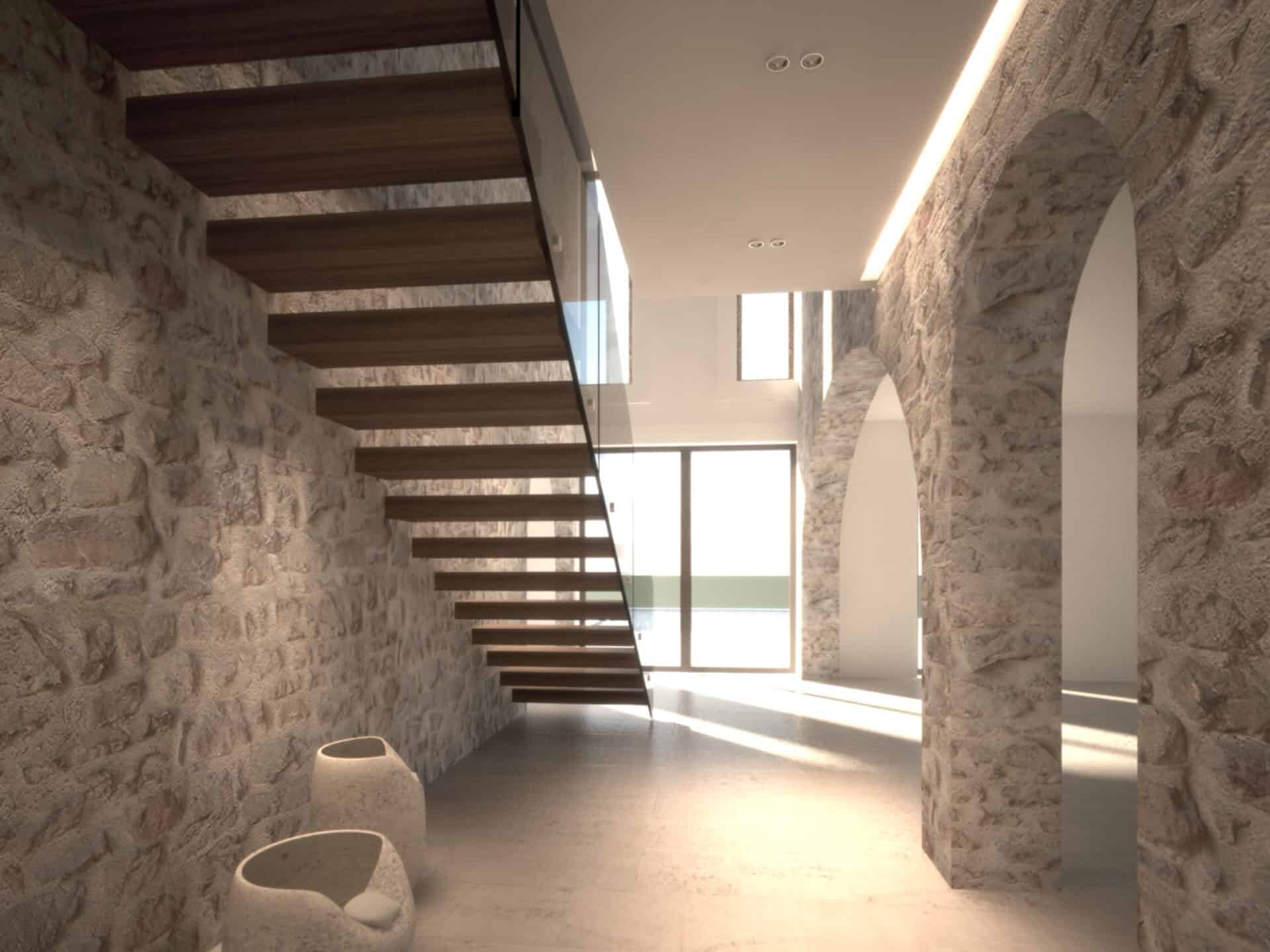 El proyecto básico incluye una finca con 4 dormitorios con baños en suite, un amplio salón/comedor con cocina americana, el salón está separado del comedor por una pared de piedra natural e invita a quedarse en un ambiente acogedor.