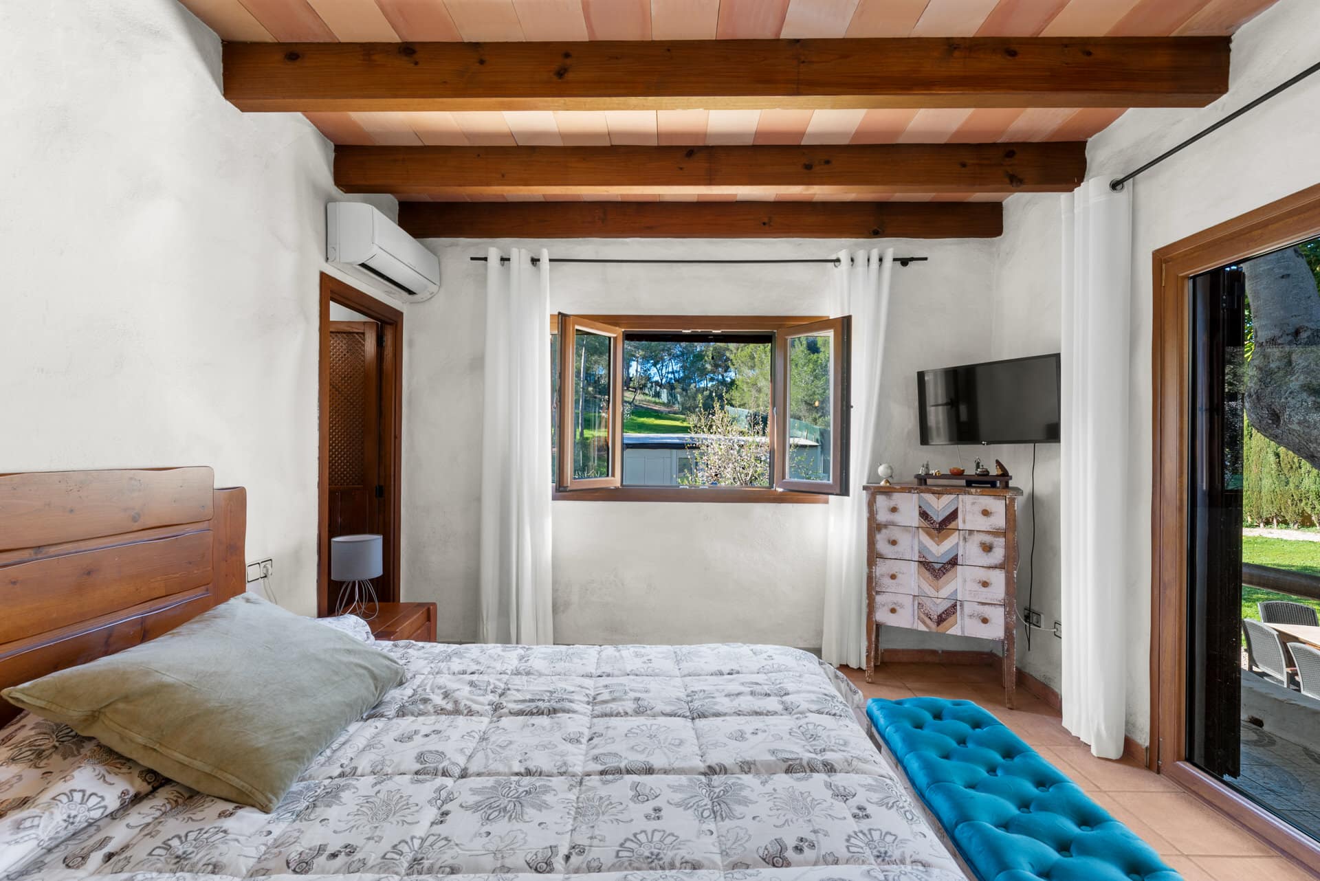 El dormitorio principal tiene baño en suite y vestidor. El espacio se complementa con otros tres dormitorios, un cuarto de baño adicional y un práctico trastero.