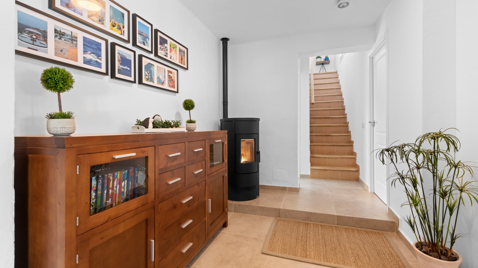 La parcela tiene 1.083 m², en los que se distribuyen unos 200 m² de espacio habitable en tres niveles. La planta baja ofrece una acogedora zona de entrada, una cocina moderna y una zona de estar y comedor de planta abierta con una acogedora estufa de pellets, ideal para veladas sociables o momentos de tranquilidad.