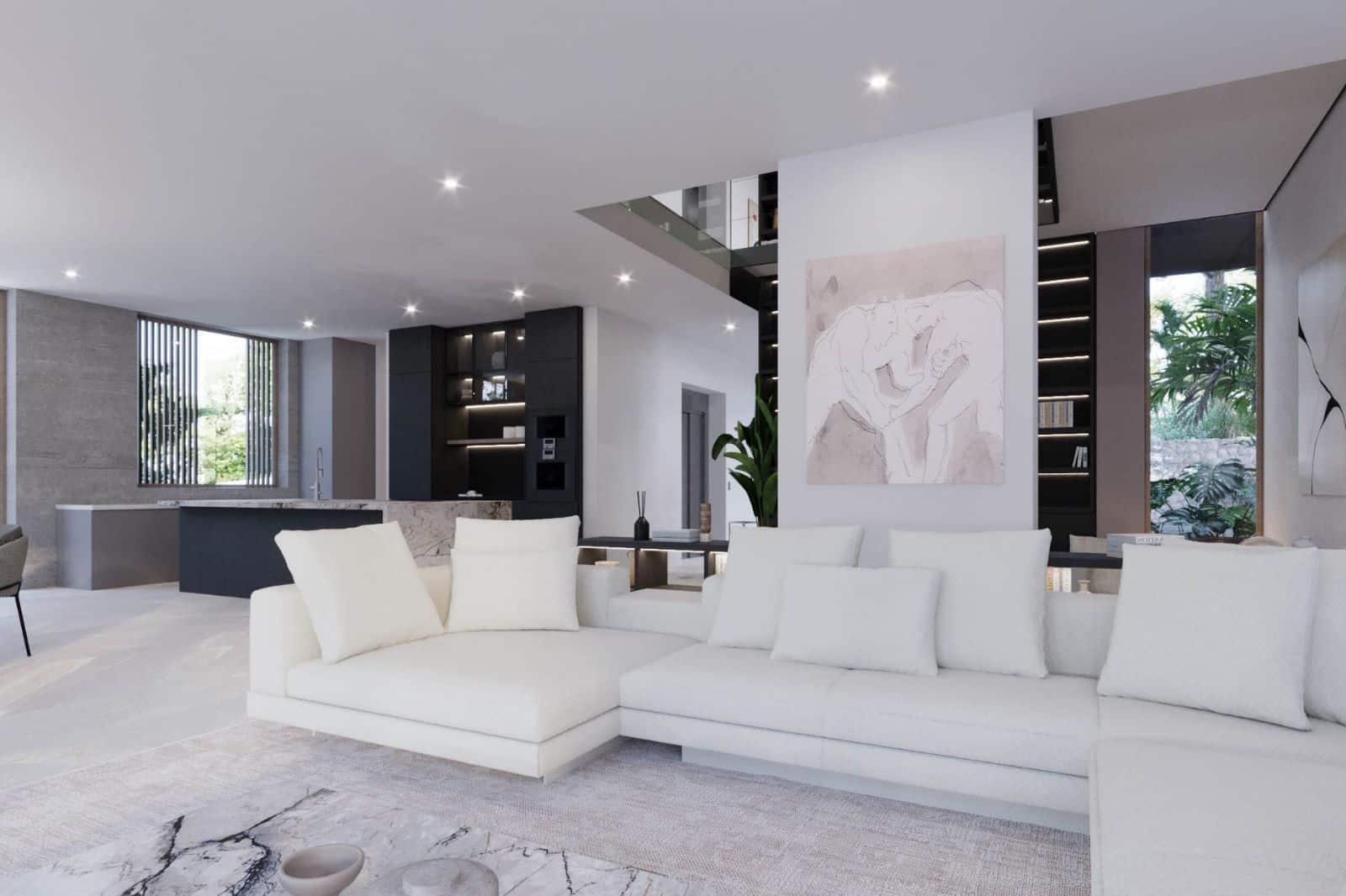 En la planta baja habrá un salón/comedor de planta abierta con acceso a una terraza cubierta y a la zona de la piscina, desde donde podrá disfrutar de maravillosas vistas al mar y al campo de golf.