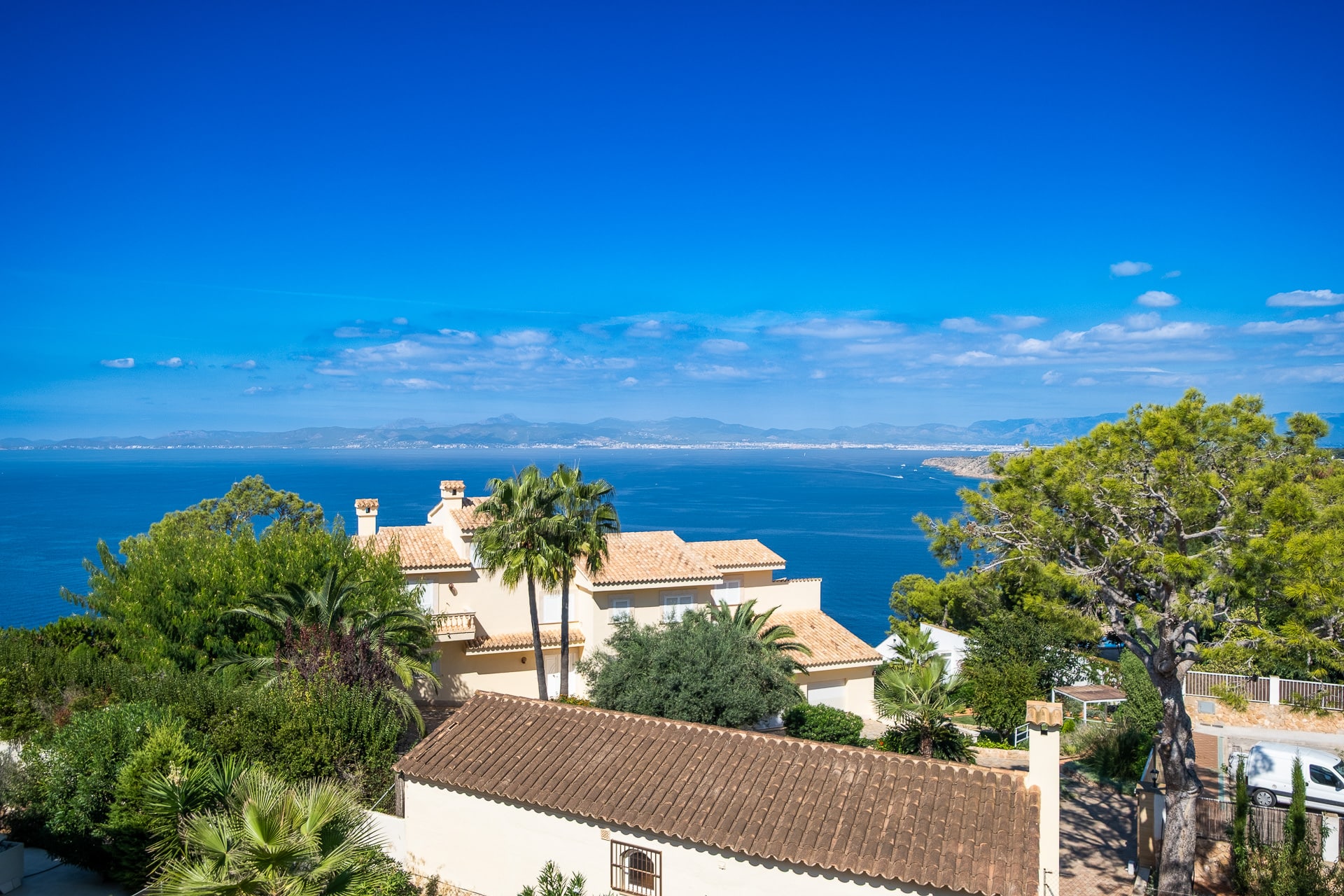 Esta villa tiene licencia de alquiler vacacional, impresionantes vistas a la Bahía de Palma, está situada en una zona tranquila de Bahía Grande y tiene un gran potencial para convertirla en una casa de ensueño.