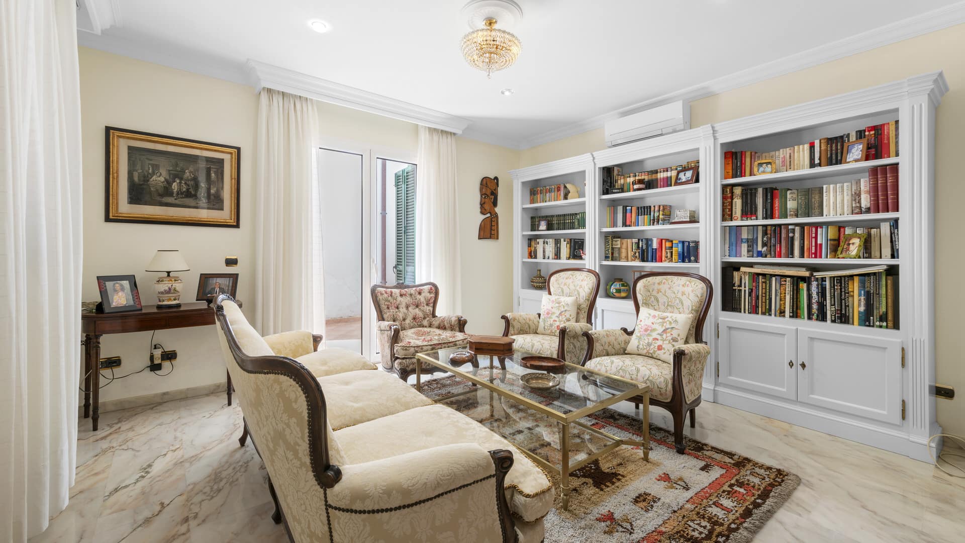 Esta majestuosa villa mediterránea está situada en una zona tranquila de Cas Català y ofrece total privacidad y vistas parciales al mar.