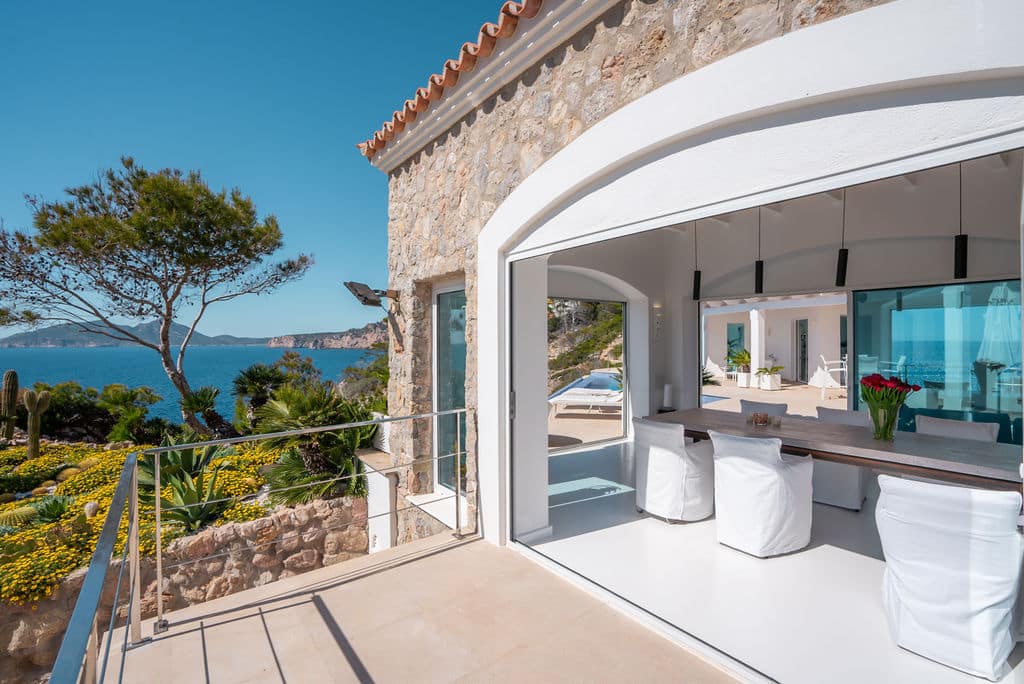 ¡Esta villa ibicenca de ensueño se encuentra directamente en La Mola, Port Andratx y ofrece unas vistas espectaculares!