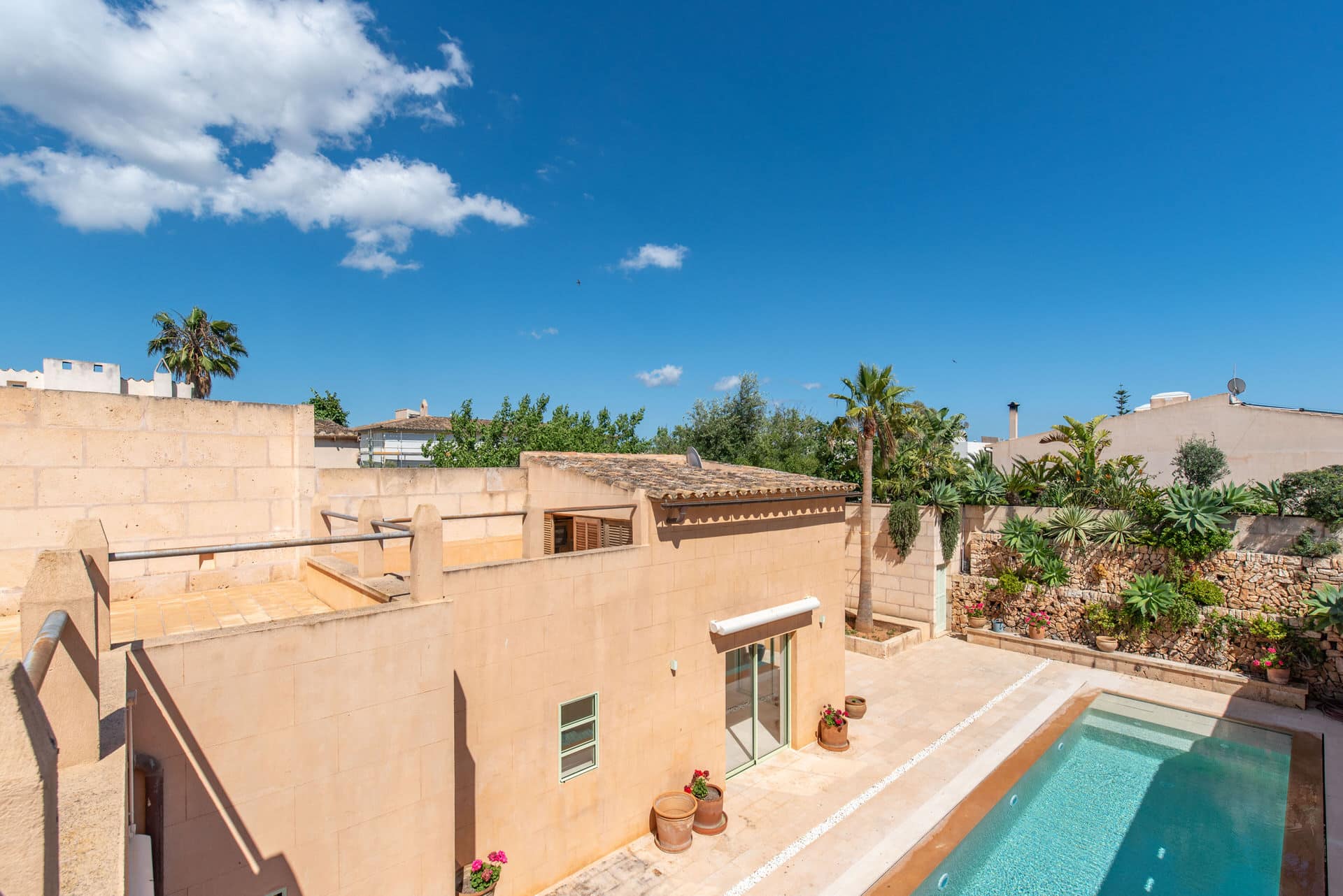 In bester Lage, mitten im charmanten Ortskern von Ses Salines, präsentiert sich dieses exklusive Stadthaus als wahres Juwel. Schon beim Betreten fällt der Blick auf die charaktervolle Natursteinfassade und den idyllischen Garten mit Überlaufpool – ein erster Eindruck, der bleibende Wirkung hinterlässt.