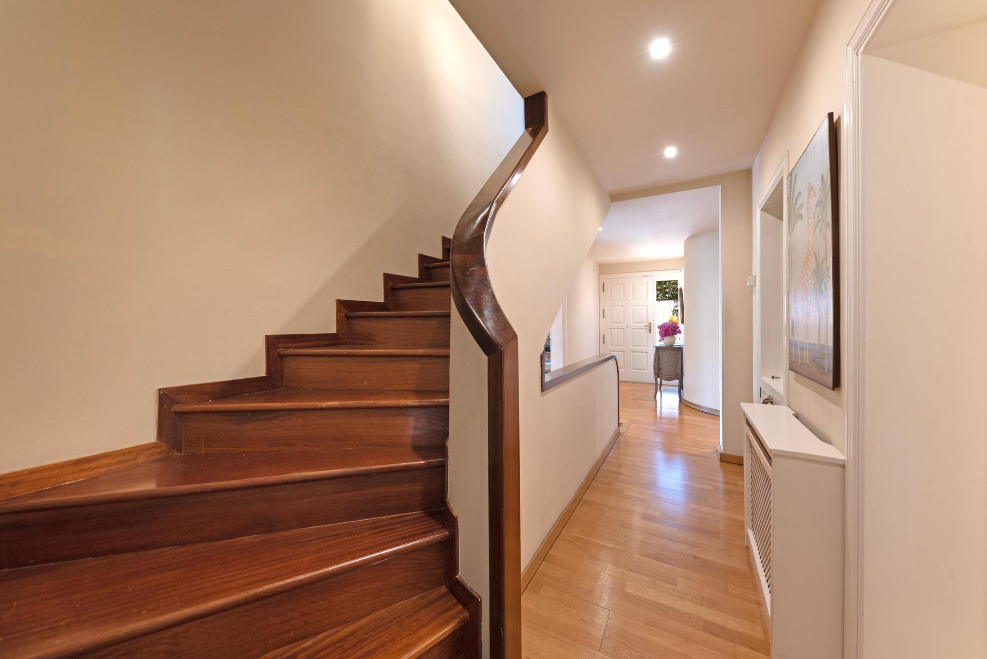 Die untere Etage ist ein multifunktionaler Raum mit einem Fernsehzimmer, das mit einem Gaskamin ausgestattet ist, zwei Schlafzimmern, einem Badezimmer und einem weiteren Raum, der an Ihre Bedürfnisse angepasst werden kann, alle mit direktem Zugang zur Terrasse und zum Garten, wo Sie einen privaten Swimmingpool genießen können.