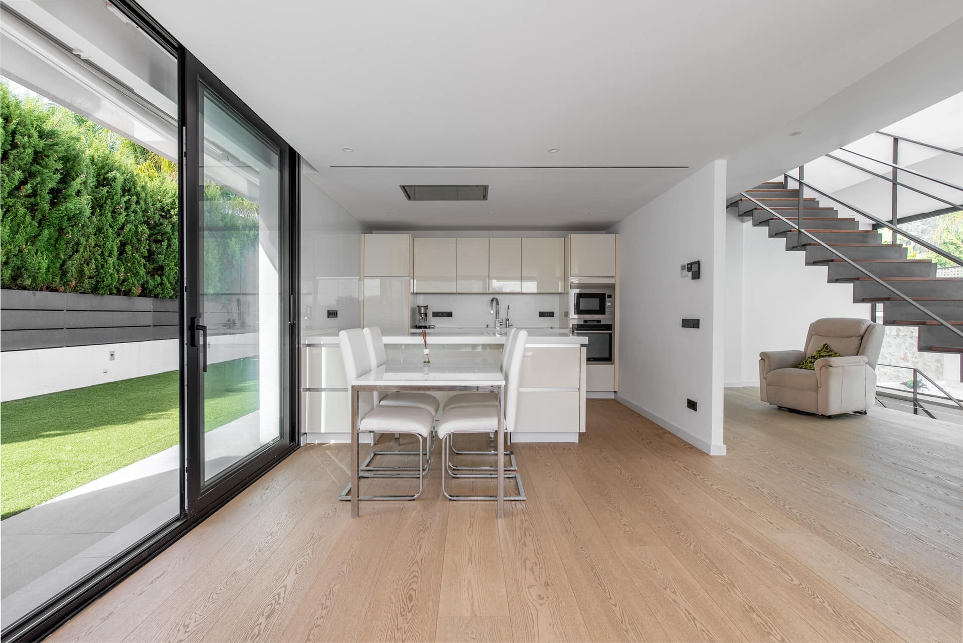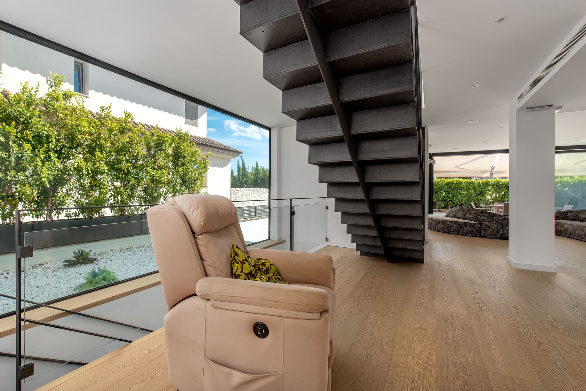 Die Innenräume wurden so gestaltet, dass sie maximalen Komfort bieten. Das Haus verfügt über vier große Schlafzimmer mit Fußbodenheizung und vier Bäder im avantgardistischen Stil, in denen hochwertige Oberflächen den Unterschied ausmachen. Ein Büro, das leicht in ein fünftes Schlafzimmer umgewandelt werden kann, bietet die Möglichkeit, von zu Hause aus zu arbeiten oder Gäste zu empfangen.