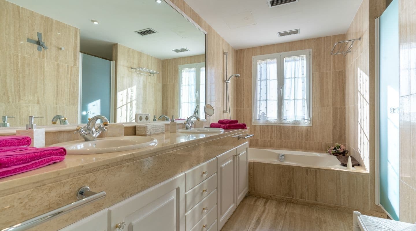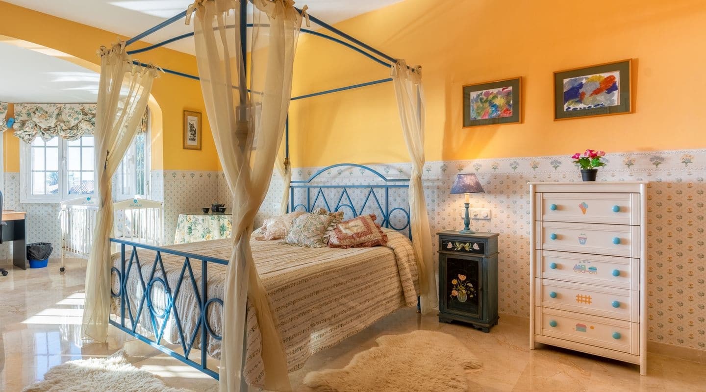 Im Obergeschoss befinden sich 3 weitere Schlafzimmer mit Bad en Suite, eins davon ist das Hauptschlafzimmer mit Ankleidebereich und Zugang zur privaten Terrasse mit Meerblick.