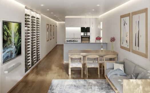 Das Innere der Wohnung ist mit einer raffinierten Ästhetik gestaltet, die skandinavischen Minimalismus mit mediterranem Charme verbindet. Es verfügt über einen geräumigen Flur, drei elegante Schlafzimmer, zwei hochwertige Badezimmer und einen hellen, offenen Wohn- und Essbereich. Die schlichte weiße Küche, die mit hochwertigen Geräten, einem Gasherd und einer zentralen Kochinsel ausgestattet ist, bietet einen stilvollen und funktionalen kulinarischen Raum.