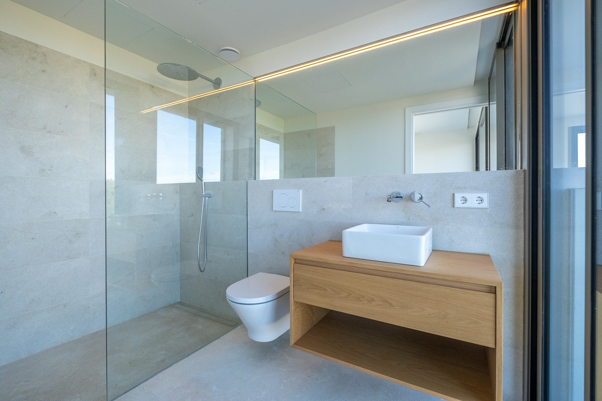 Ein besonderes Highlight ist die Dachterrasse mit integriertem Jacuzzi, von der aus sich ein traumhafter Blick auf das Meer eröffnet – der perfekte Ort, um entspannte Stunden in privater Atmosphäre zu verbringen. Für zusätzlichen Wohnkomfort sorgt die Fußbodenheizung, die in allen Räumen für ein angenehmes Raumklima zu jeder Jahreszeit garantiert.