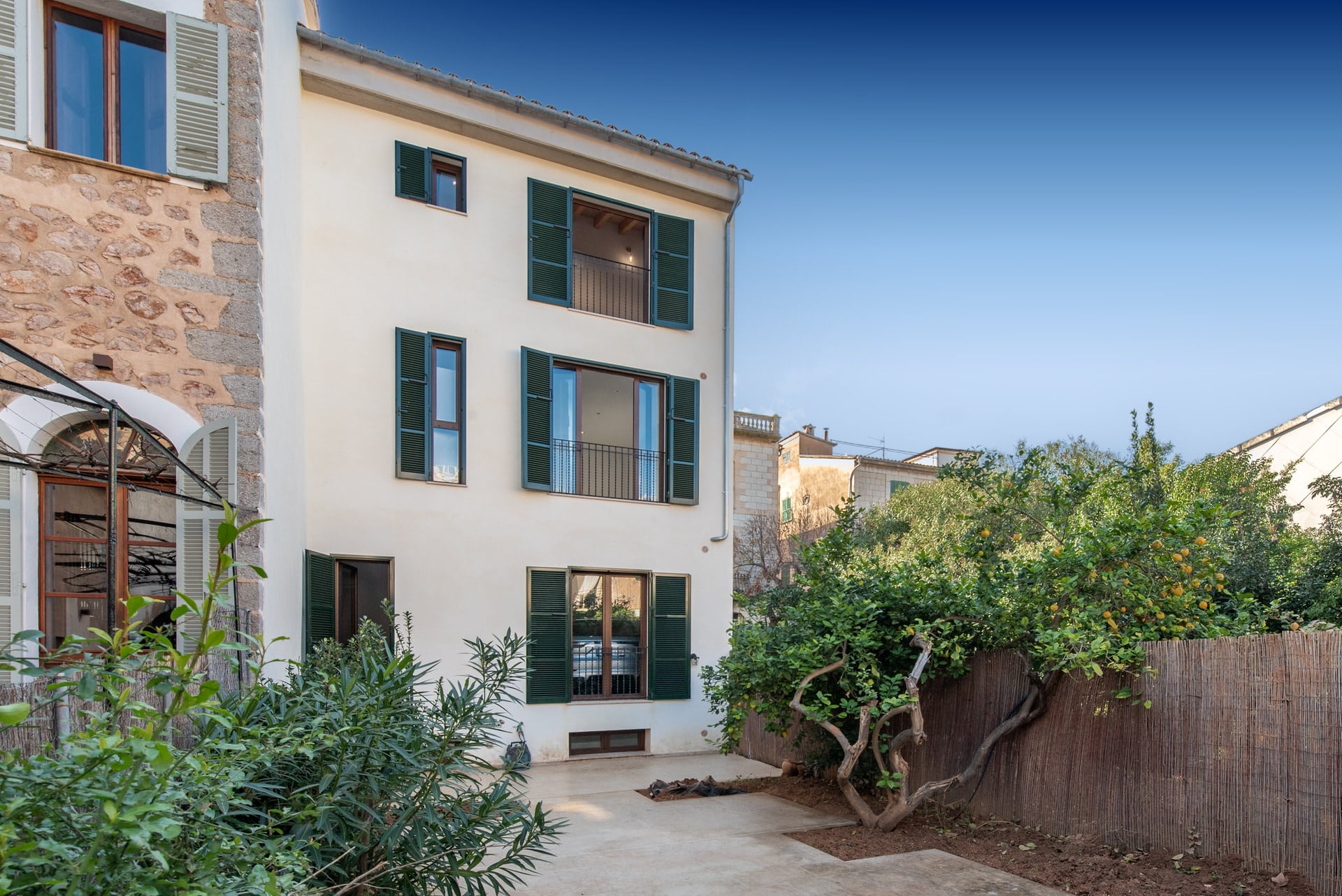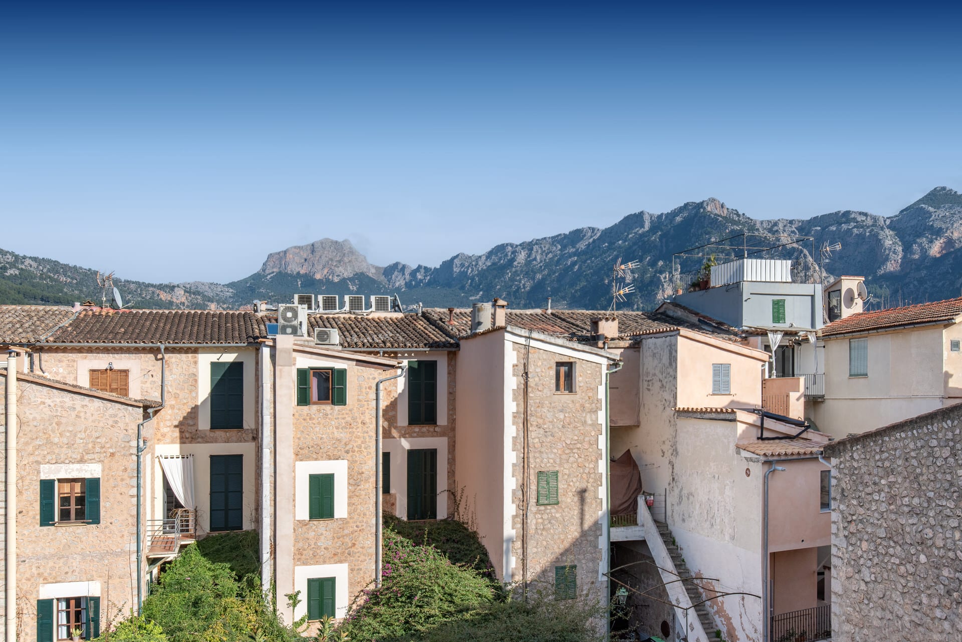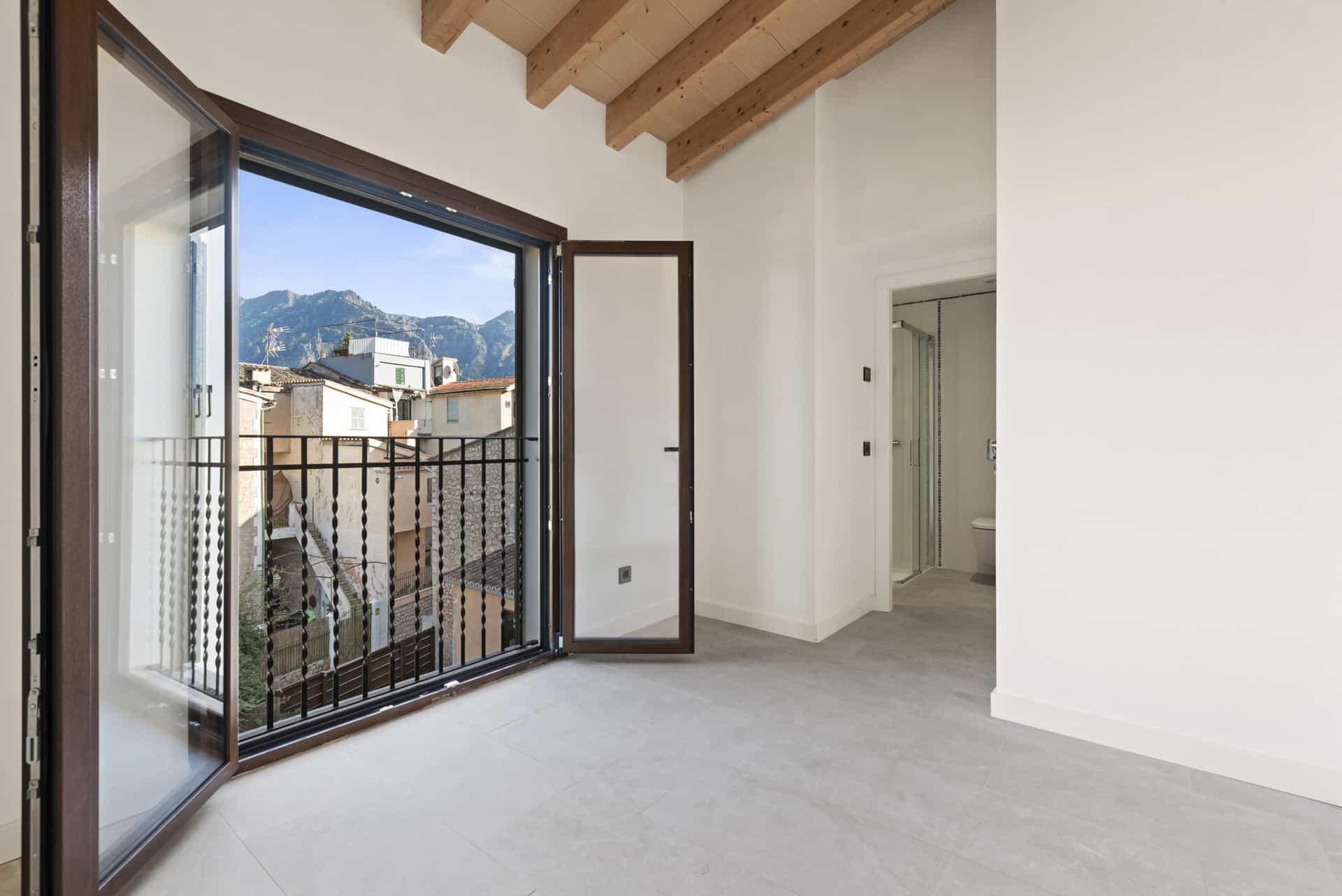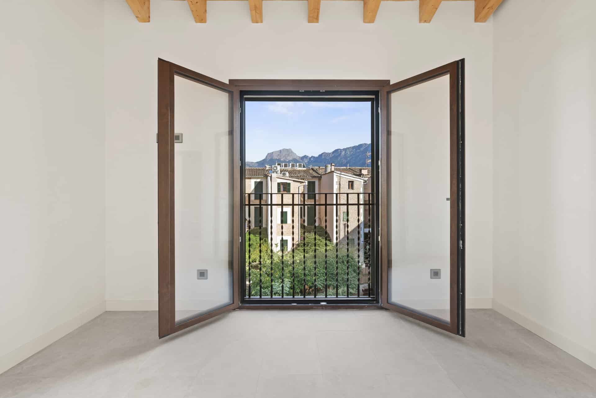 Das Haus verfügt über drei komfortable Schlafzimmer, die jeweils mit einem eigenen, stilvollen Bad en suite ausgestattet sind und Ihnen somit ein Höchstmaß an Privatsphäre bieten. Sowohl vom Wohnbereich als auch von den Schlafzimmern aus genießen Sie einen unvergleichlichen Panoramablick auf die majestätischen Gipfel des Tramuntana-Gebirges – ein tägliches Naturschauspiel, das Sie begeistern wird.