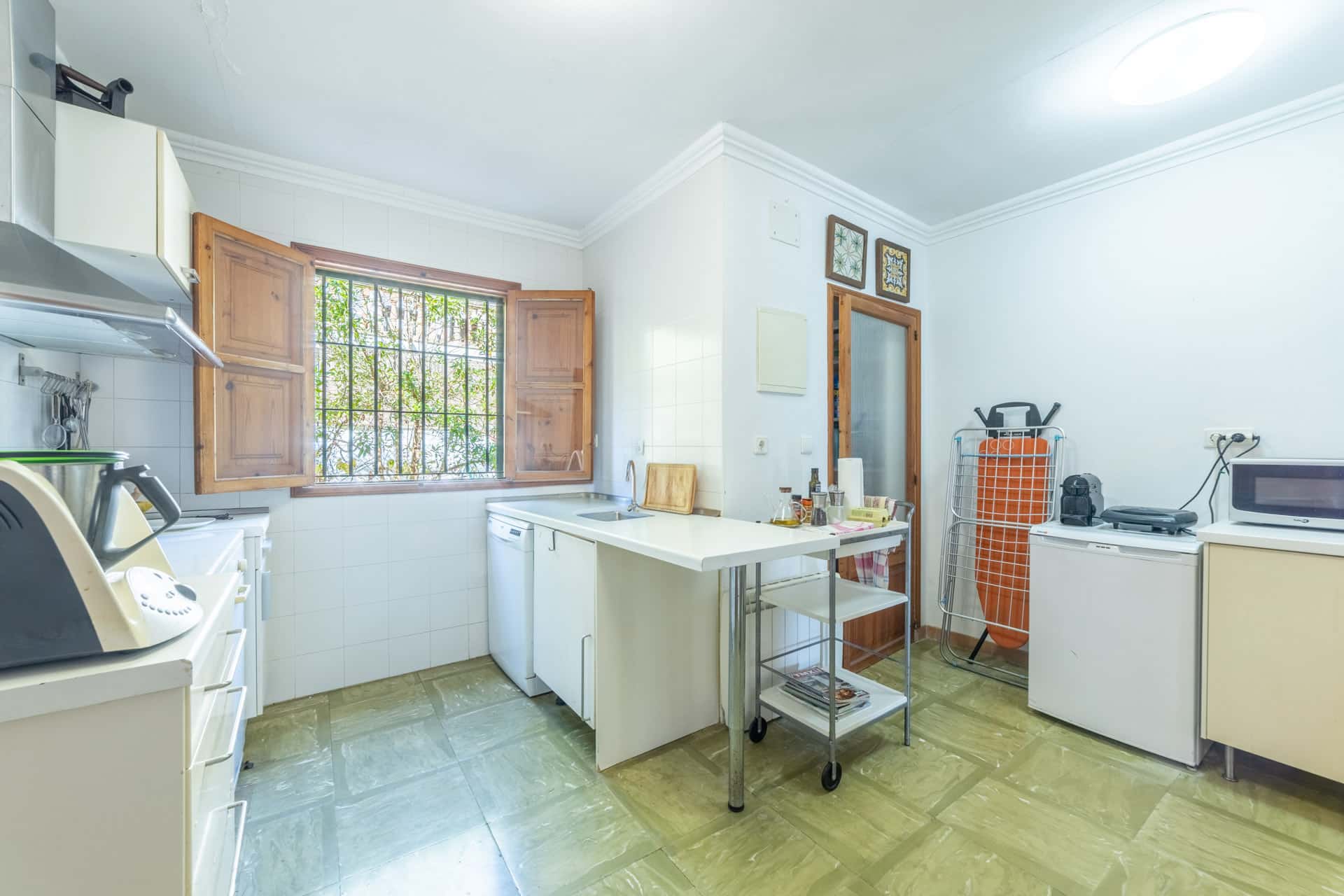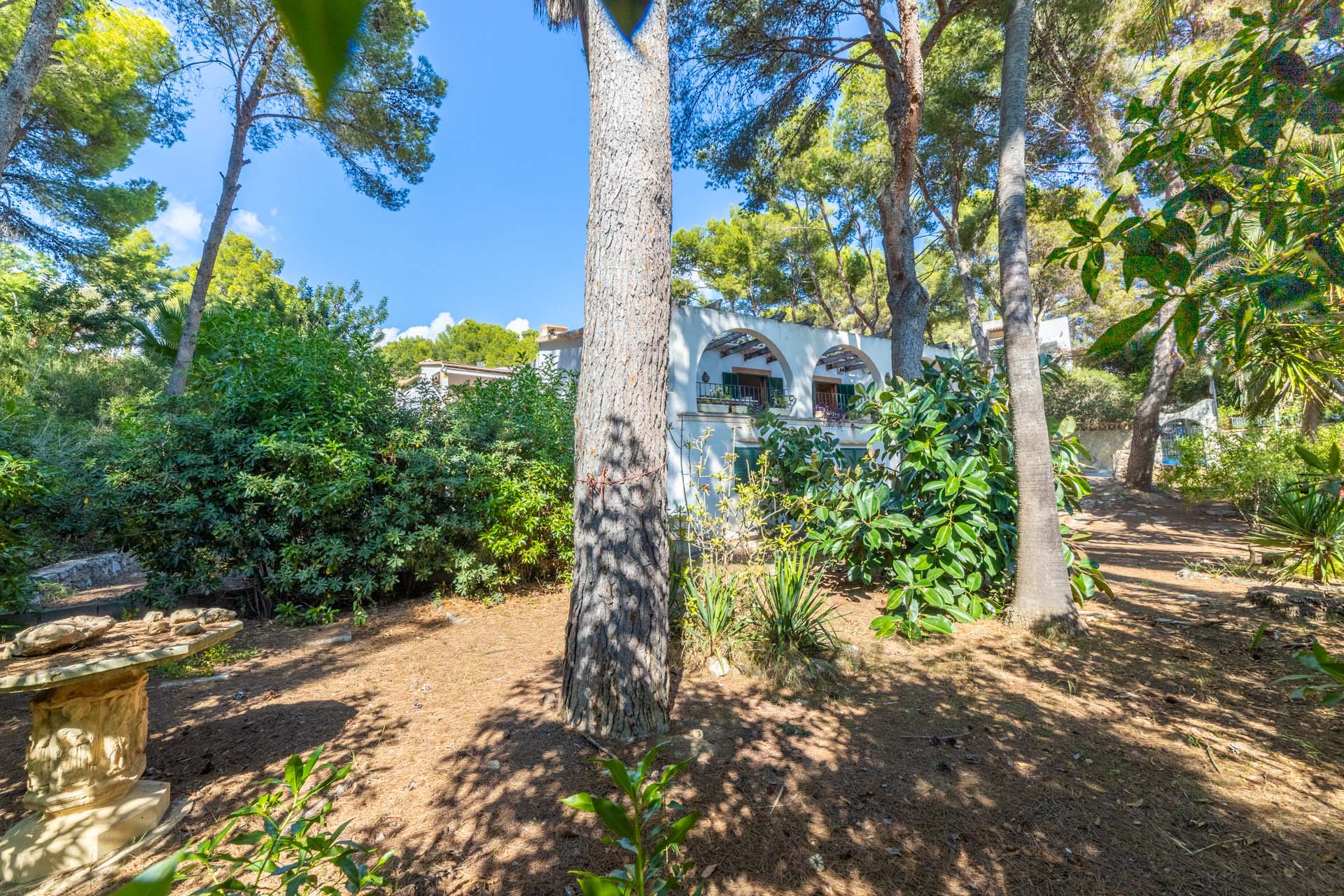 Das ca. 850 m² große Grundstück ist von einem üppigen Garten mit alten Bäumen umgeben und schafft eine grüne Oase mit viel Privatsphäre. Der Außenbereich bietet ausreichend Platz für Pool, Chill-out-Zonen oder einen mediterranen Garten – ideal für Natur- und Sonnenliebhaber.