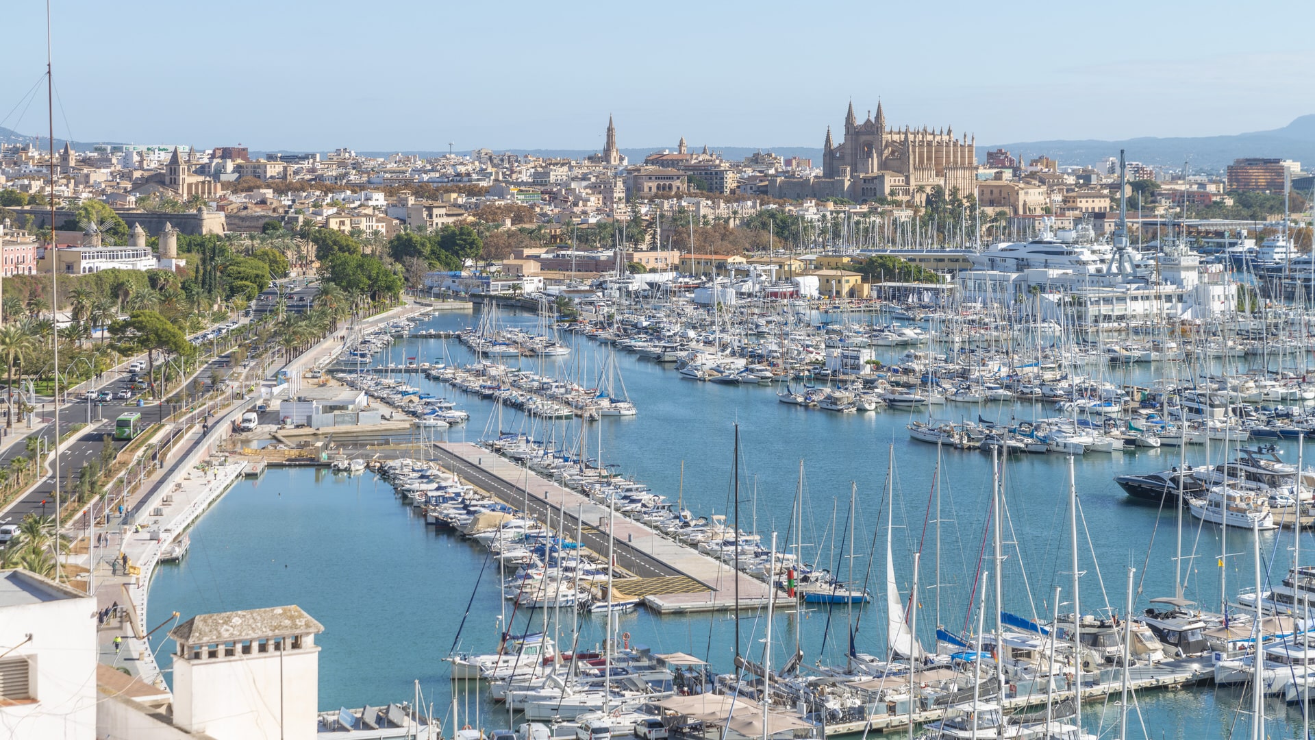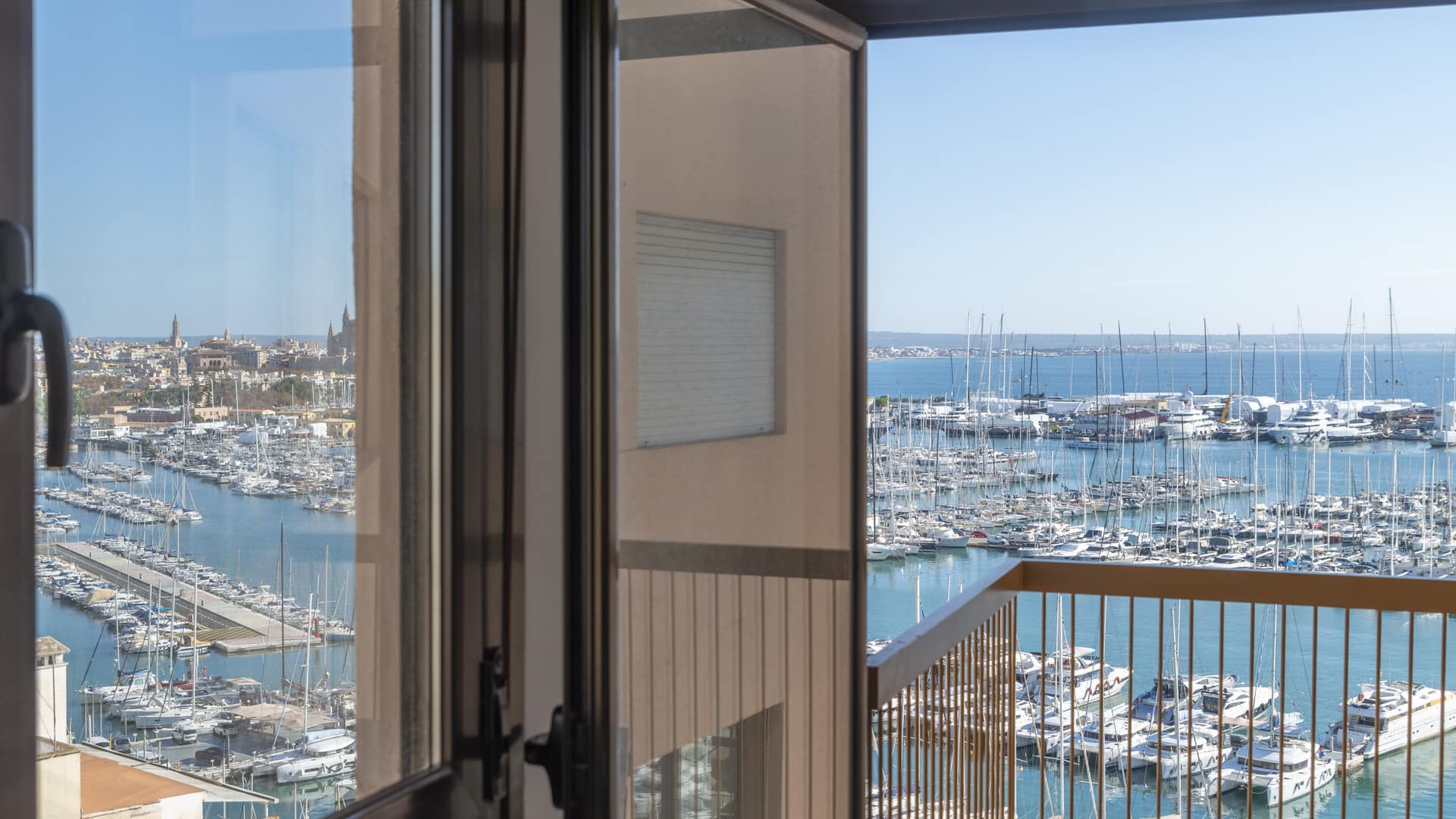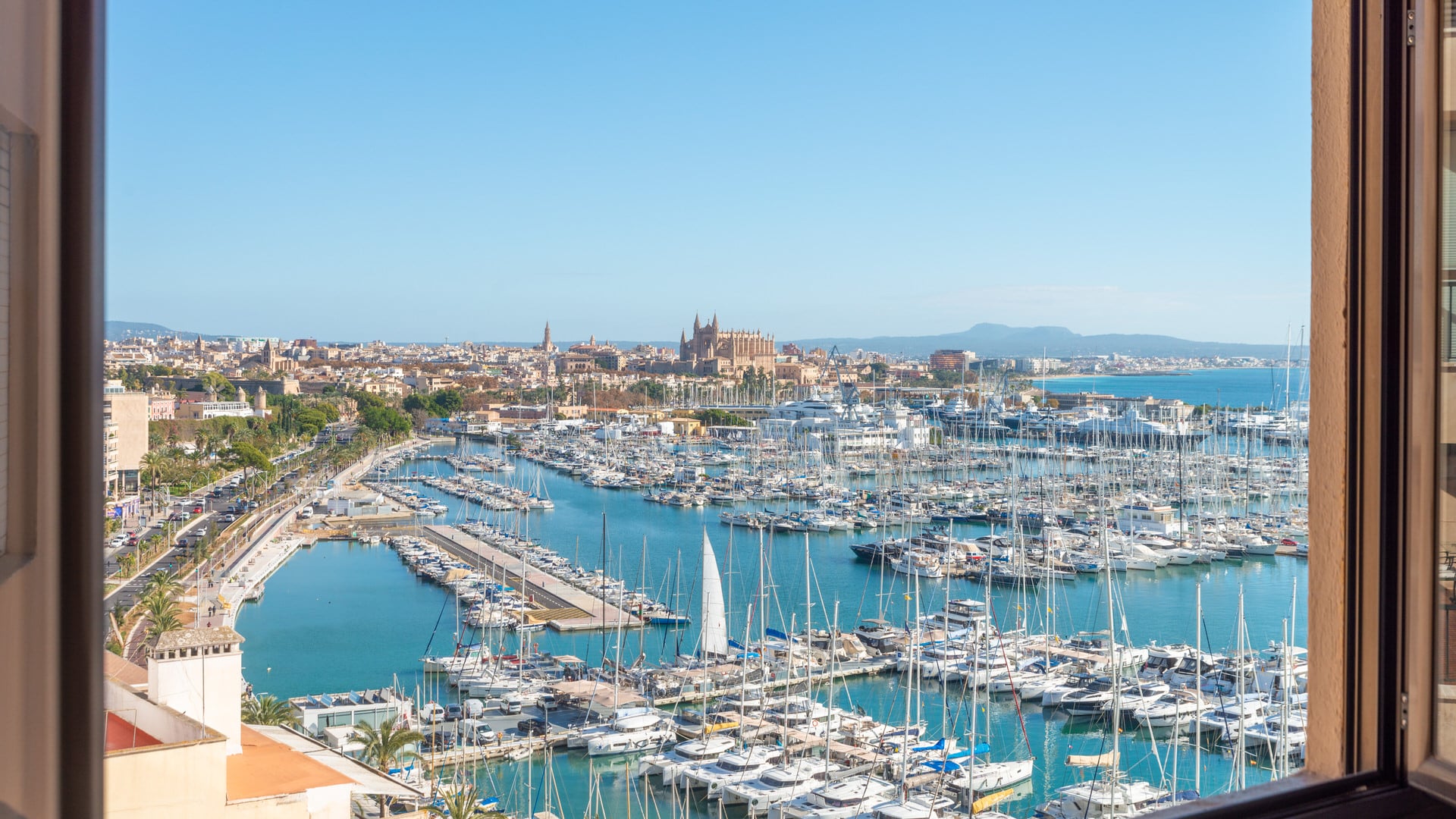 Wohnung mit Panoramablick auf den Yachthafen und die Kathedrale von Palma.