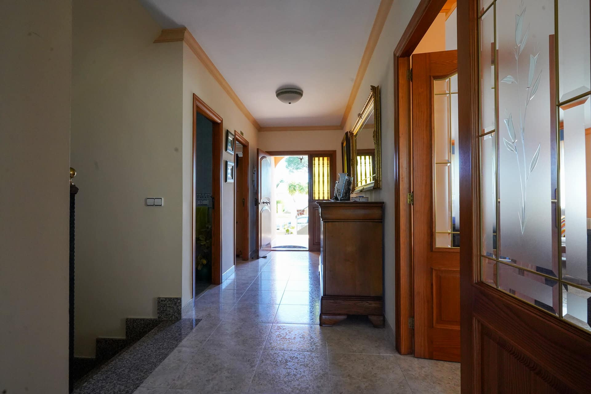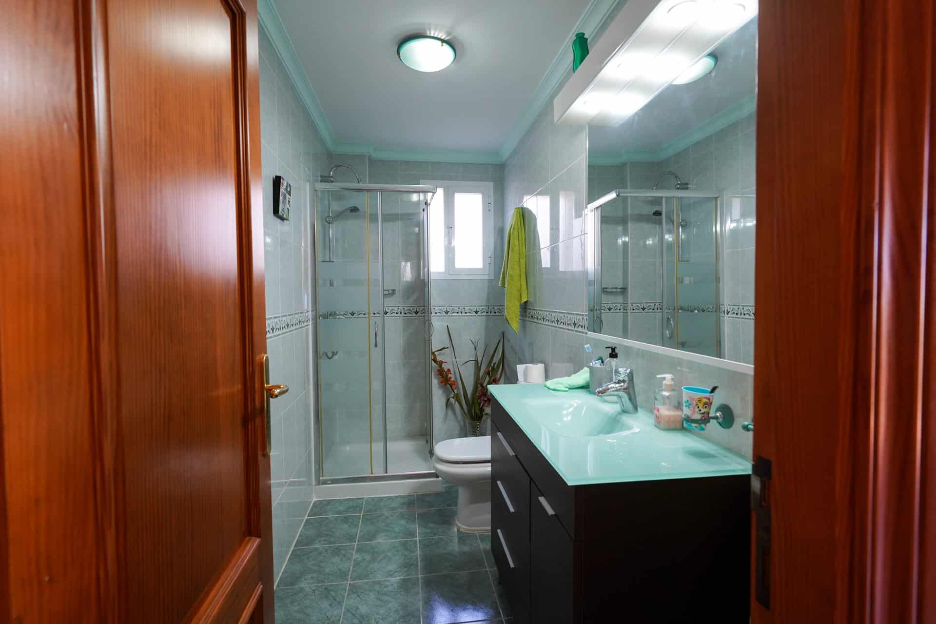 Vier Doppelschlafzimmer mit Einbauschränken und Ausgang zur Terrasse - zwei davon mit eigenem Bad - und ein drittes komplettes Bad.