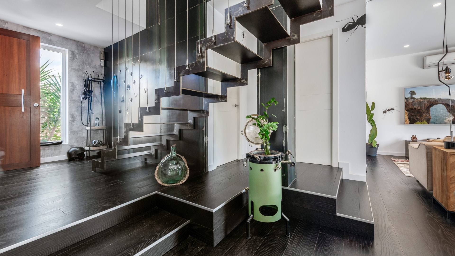 Das Haus kombiniert einen warmen industriellen Stil, bei dem Naturholz und schwarzes Metall ein perfektes Gleichgewicht zwischen Robustheit und Wärme schaffen. Jeder Raum spiegelt die Persönlichkeit und das Talent des Eigentümers wider, mit handgefertigten Möbeln und Details, die Authentizität und Charakter verleihen. Massivholzmöbel, maßgeschneiderte Metallstrukturen und handgefertigte Oberflächen finden sich in jeder Ecke, von handgeschweißten Bücherregalen bis hin zu Esstischen, die vom Eigentümer selbst entworfen und hergestellt wurden. Die Beleuchtung mit schmiedeeisernen Lampen und bernsteinfarbenen Tönen unterstreicht die Textur der natürlichen Materialien und schafft eine gemütliche und moderne Atmosphäre. Das Haus ist mit modernen Geräten ausgestattet, die in ein rustikal-industrielles Umfeld integriert sind und Funktionalität und Ästhetik vereinen. Jedes Element wurde mit Hingabe ausgewählt oder geschaffen und macht dieses Haus zu einem einzigartigen, authentischen Raum mit einer eigenen Seele.