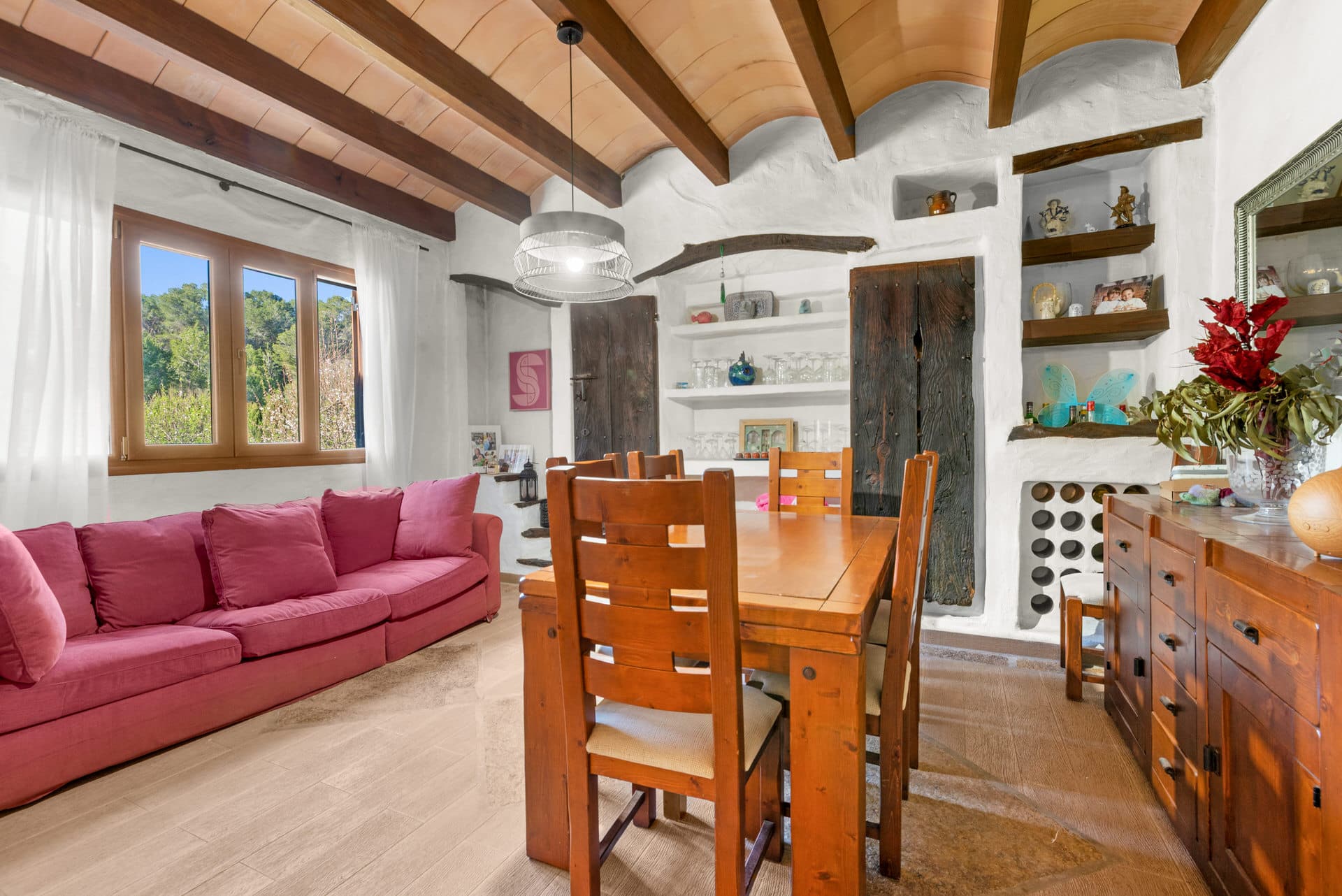 Inmitten einer reizvollen Naturlandschaft präsentiert sich diese charmante Finca auf einem weitläufigen Grundstück als Rückzugsort mit besonderem Flair. Die Lage besticht durch absolute Ruhe und ein hohes Maß an Privatsphäre – umgeben von üppiger Vegetation und der ursprünglichen Schönheit der Umgebung.